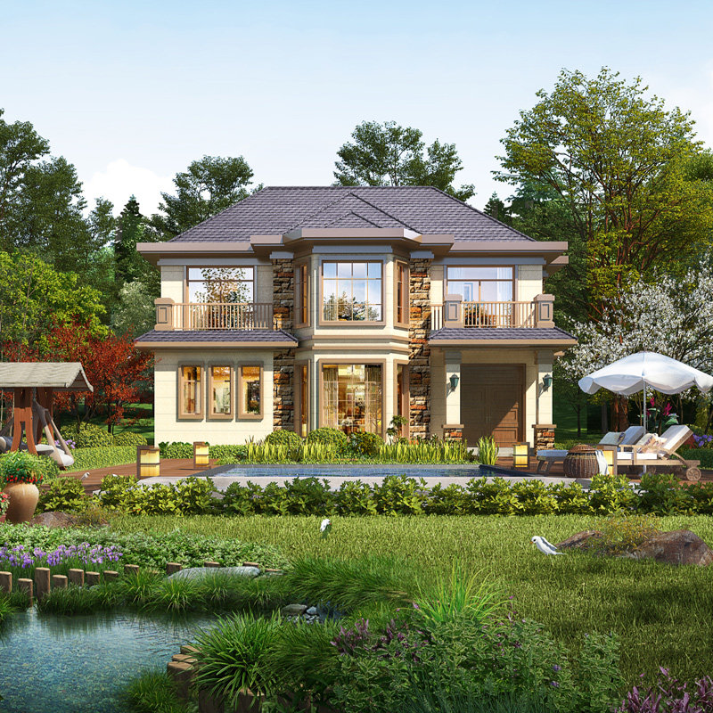 当前的位置:首页 > 别墅图纸 > 二层欧式别墅设计图纸,全套新农村自建房简单施工效果图下载