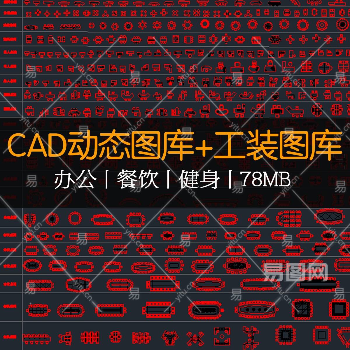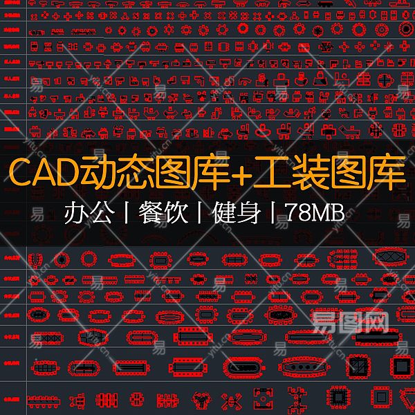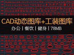 【CAD图纸】工装CAD图库及动态图库 办公+餐饮+健身娱乐CAD图库