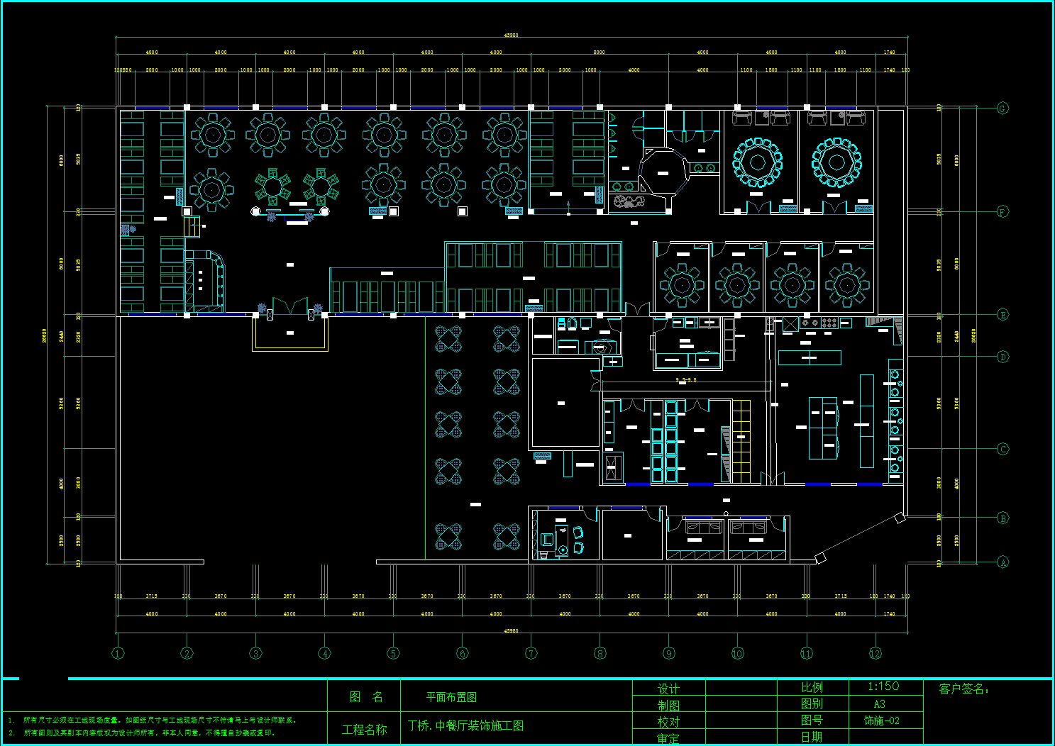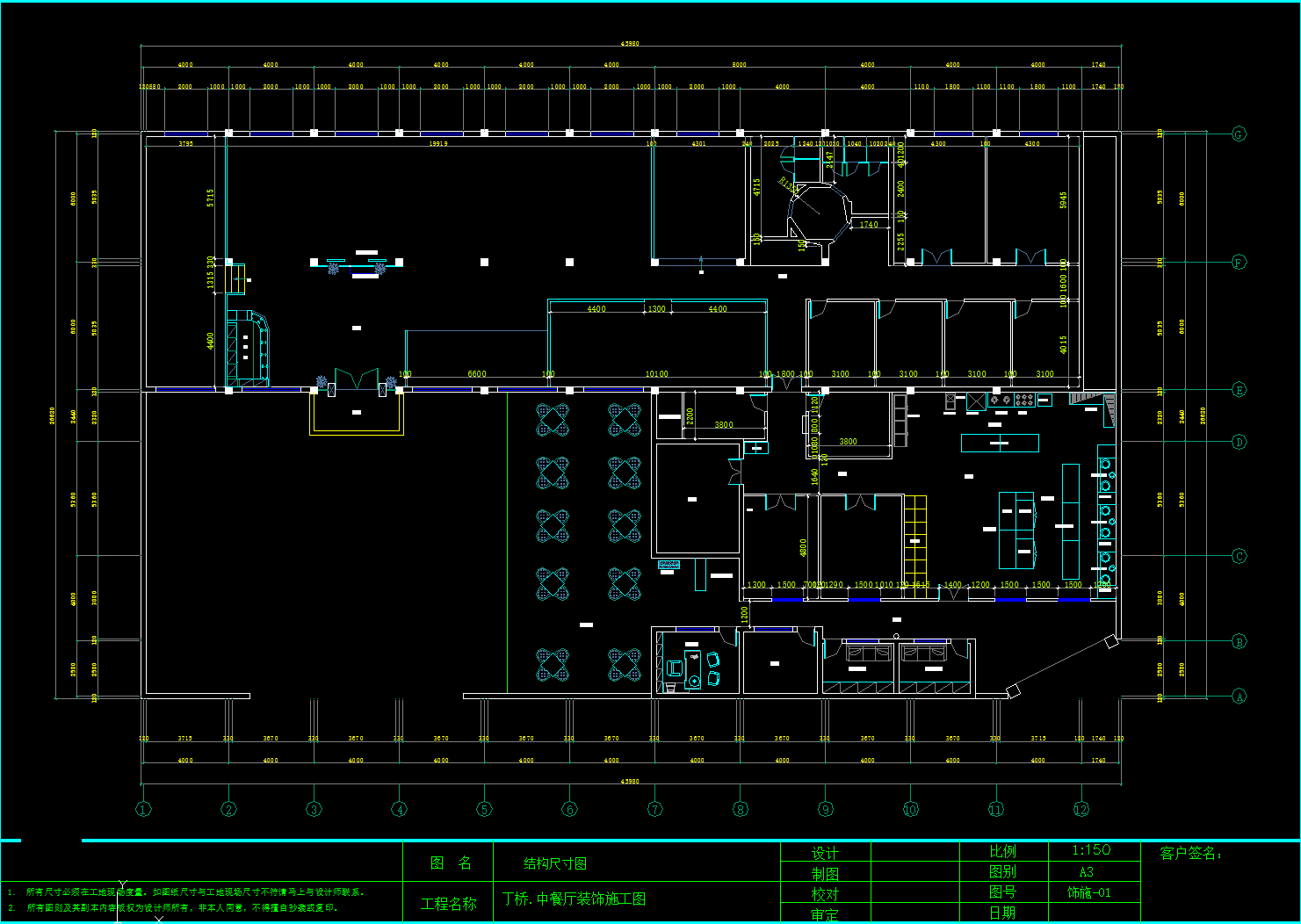 丁桥中餐厅装修施工图,餐厅CAD布置图下载