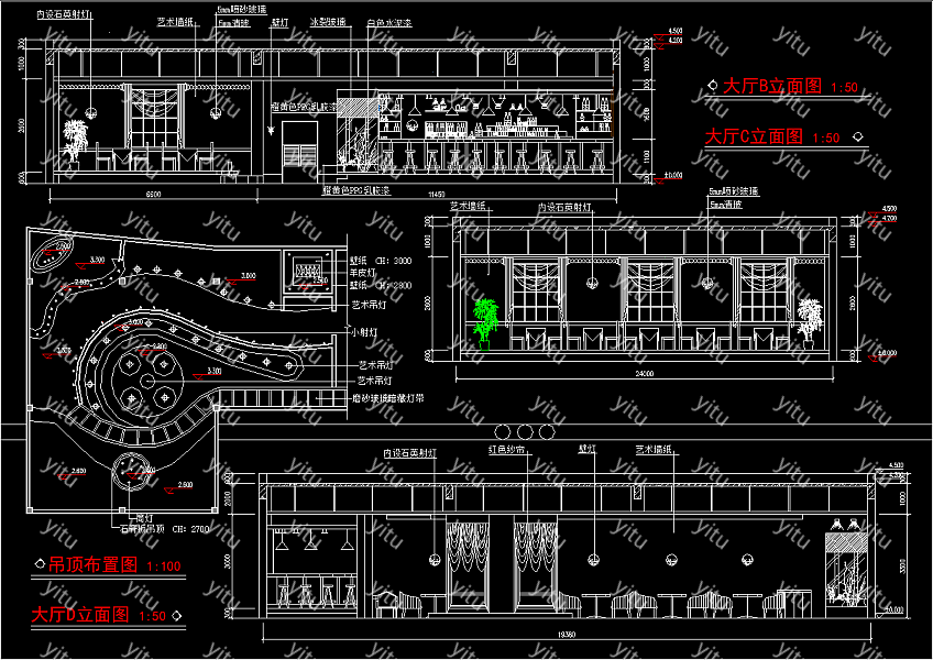 咖啡厅设计CAD图纸,CAD平面布置图免费下载:立面图和平面图都放置在一起方便管理减少文件的使用能方便我们找图,带建筑效果图设计施工图套图一整套施工图可供下载。