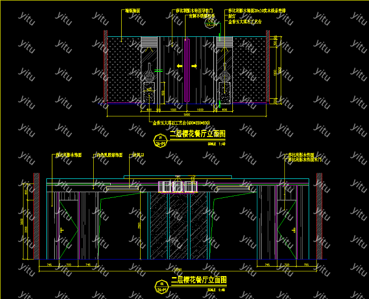樱餐厅装修CAD整套图纸餐厅CAD平面布置图免费下载:立面图和平面图都放置在一起方便管理减少文件的使用能方便我们找图,带建筑效果图设计施工图套图一整套施工图可供下载。