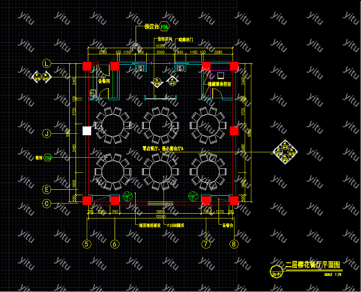当前的位置:首页 > 室内CAD图纸 > cad > 餐饮娱乐 > 餐饮空间 > 樱花餐厅装修CAD整套图纸,餐厅CAD平面布置图