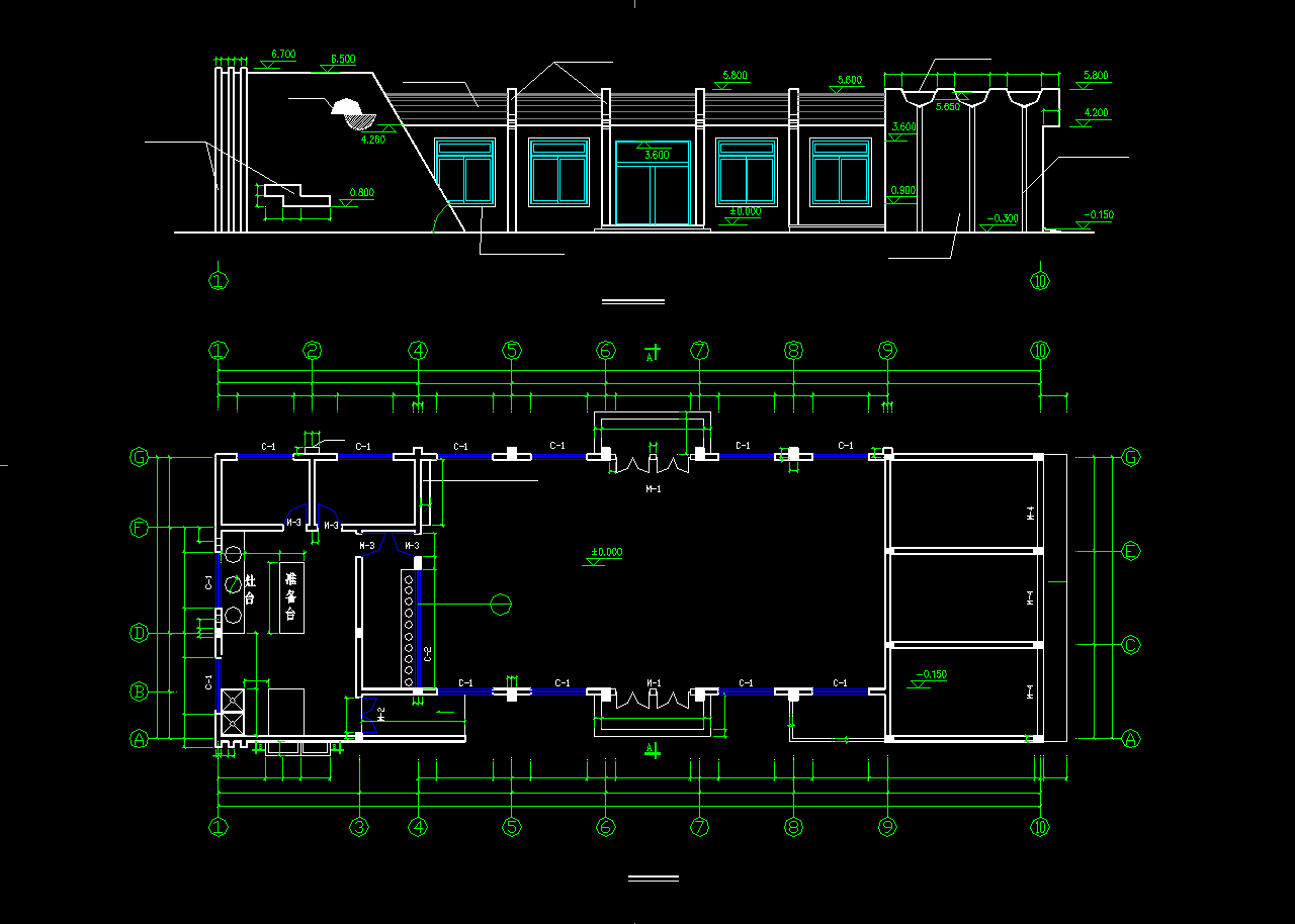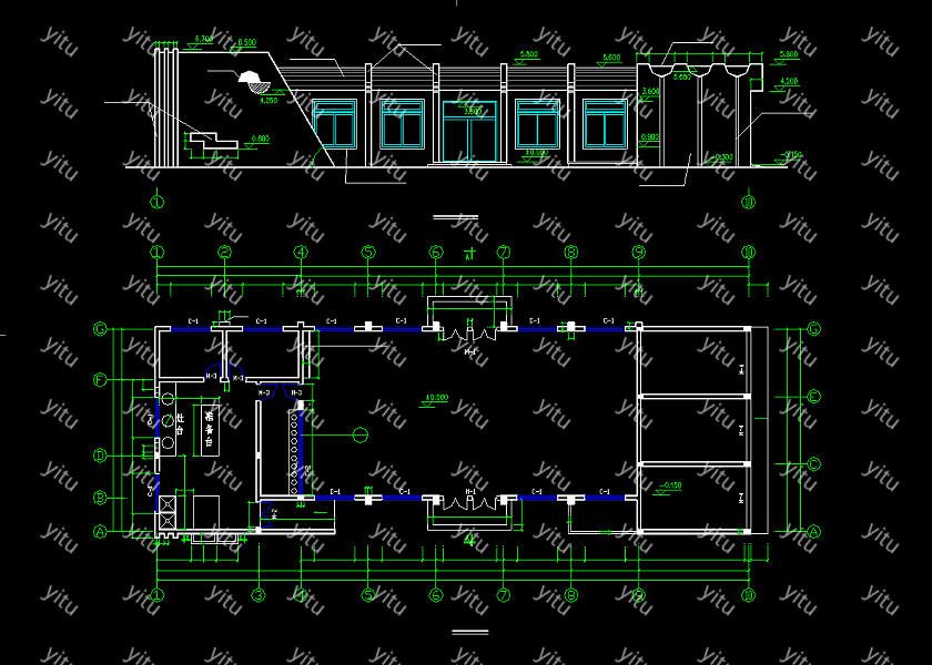 食堂CAD施工图,食堂CAD平面布置图下载:立面图和平面图都放置在一起方便管理减少文件的使用能方便我们找图,带建筑效果图设计施工图套图一整套施工图可供下载。