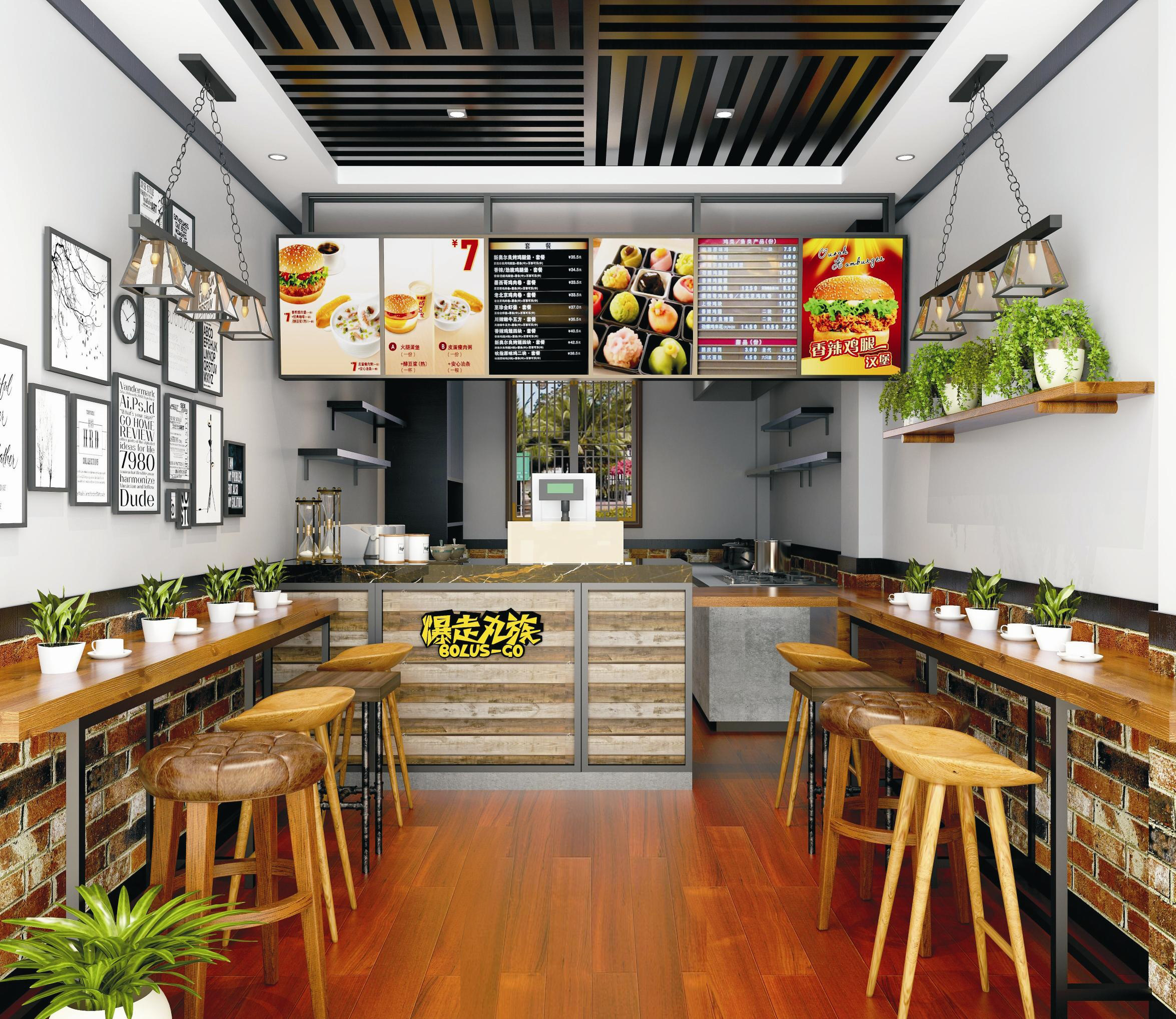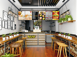 资料为:汉堡奶茶餐饮店施工图效果图CAD图纸