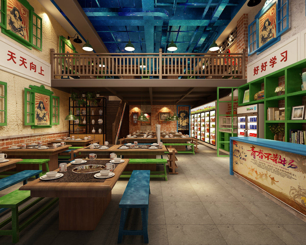 串串餐厅施工图效果图CAD图纸,餐厅cad设计图纸下载
