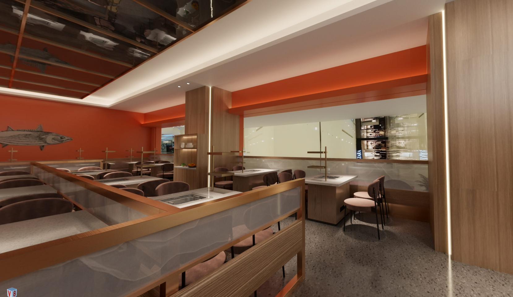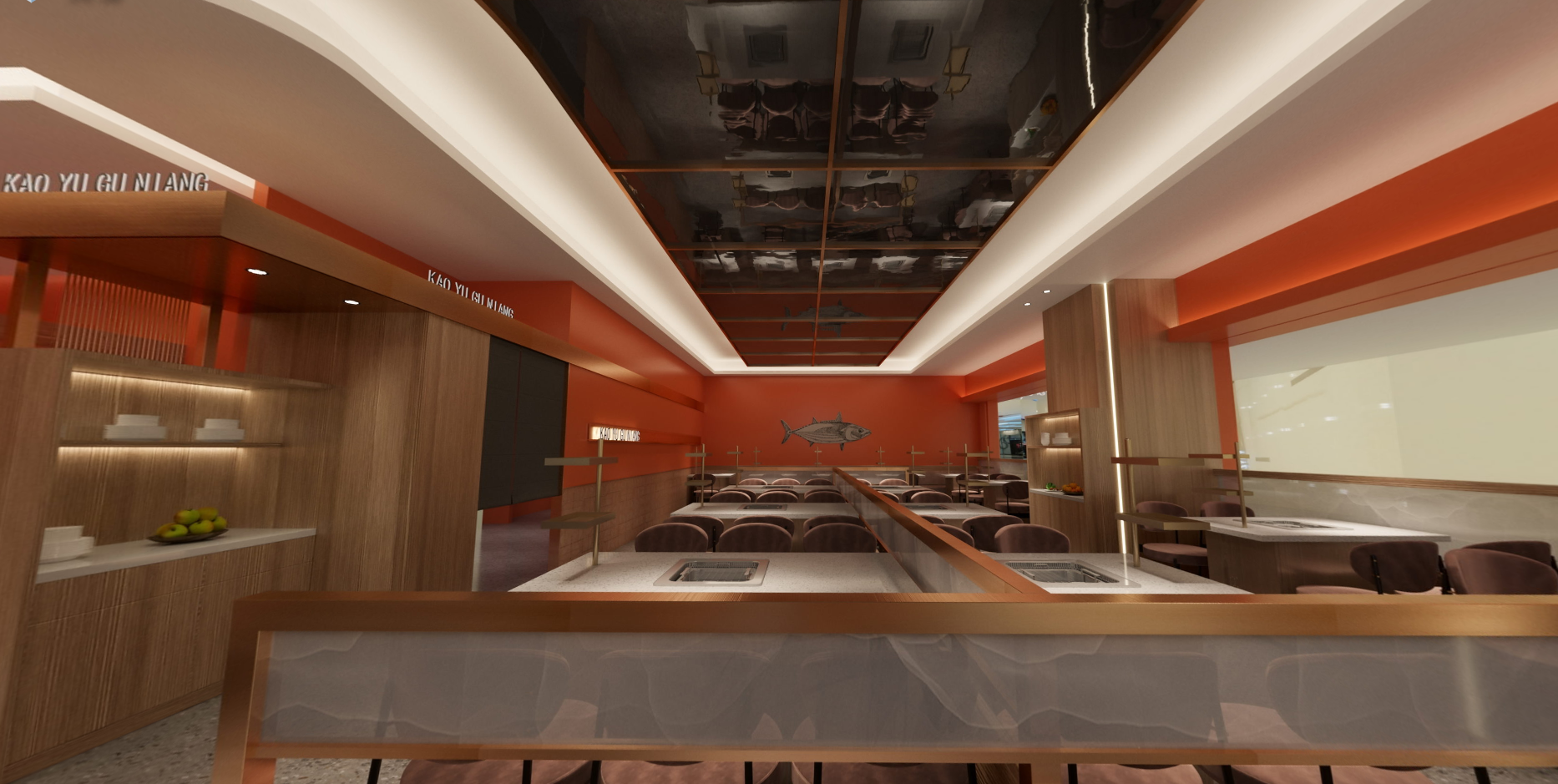 商场餐饮现代餐饮烤鱼鱼餐厅施工图,餐厅cad后设计图纸下载