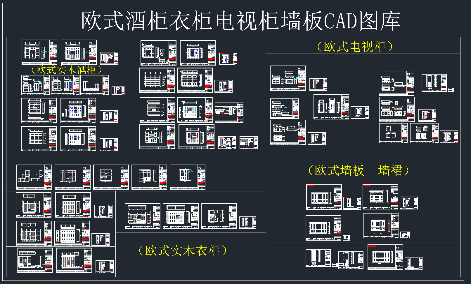 欧式酒柜衣柜电视柜墙板CAD图库,酒柜衣柜电视柜CAD施工图纸下载