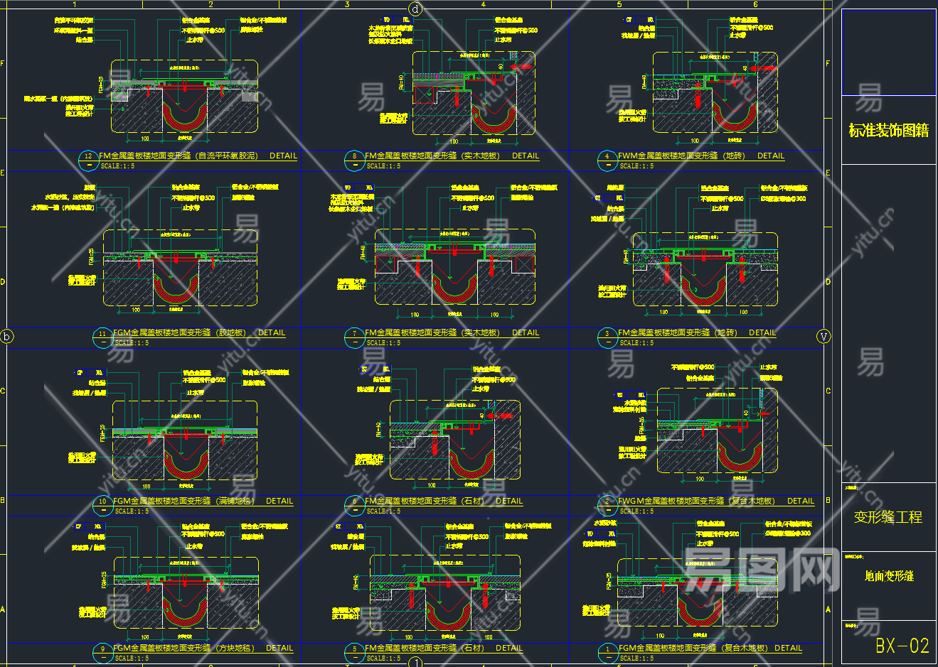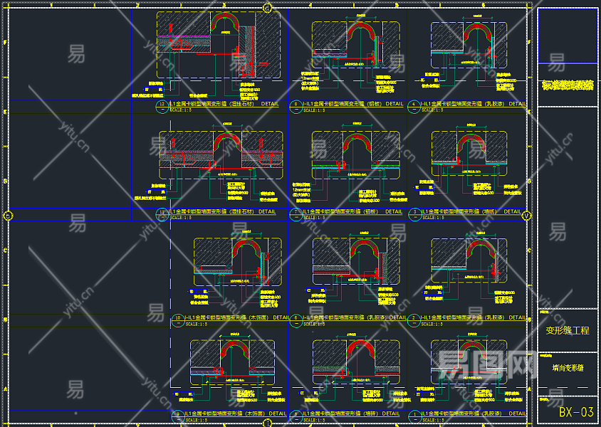 【CAD图纸】工艺收口CAD节点图集丨地面+天花+墙面+柱子+门+隔墙+变形缝+固定家具