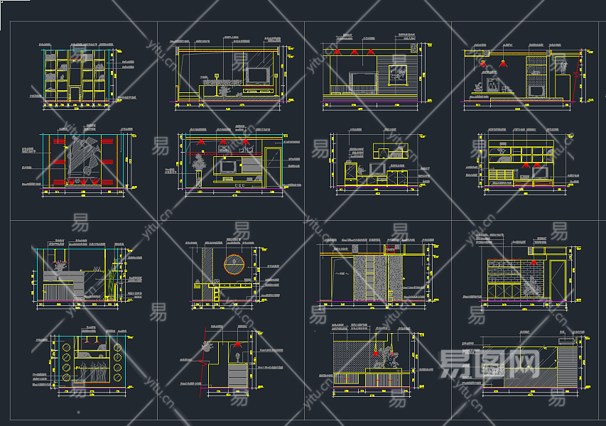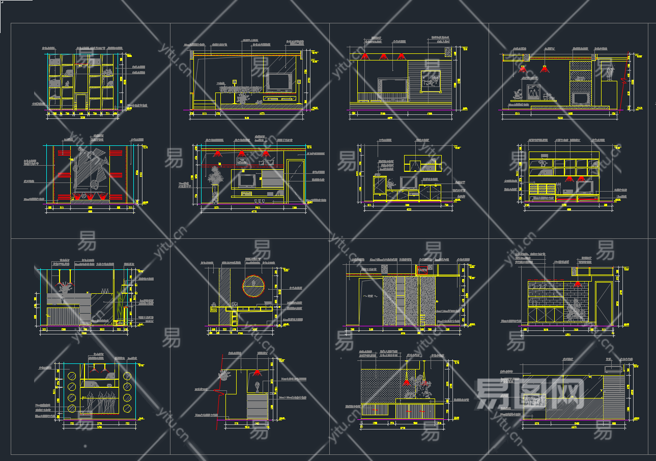 【CAD图纸】常用CAD图块 装修背景墙CAD施工图366套
