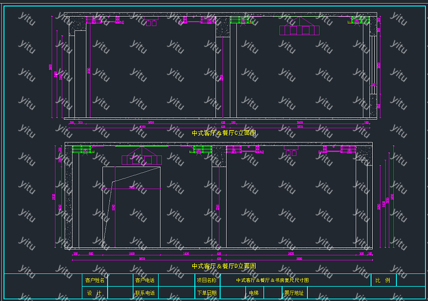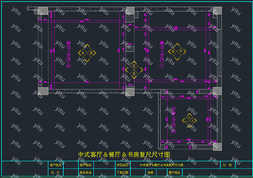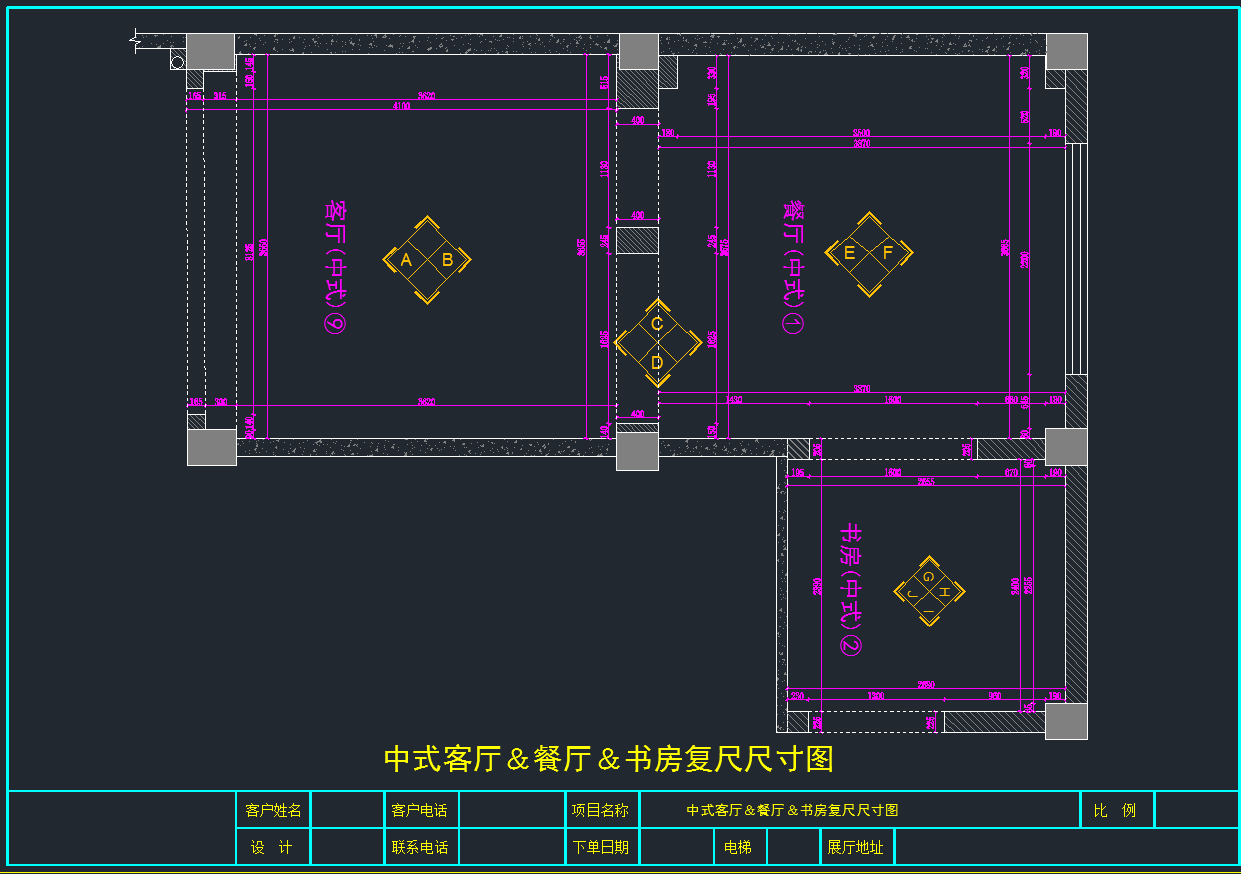 新中式客厅餐厅书房CAD深化图,书房CAD建筑图纸下载