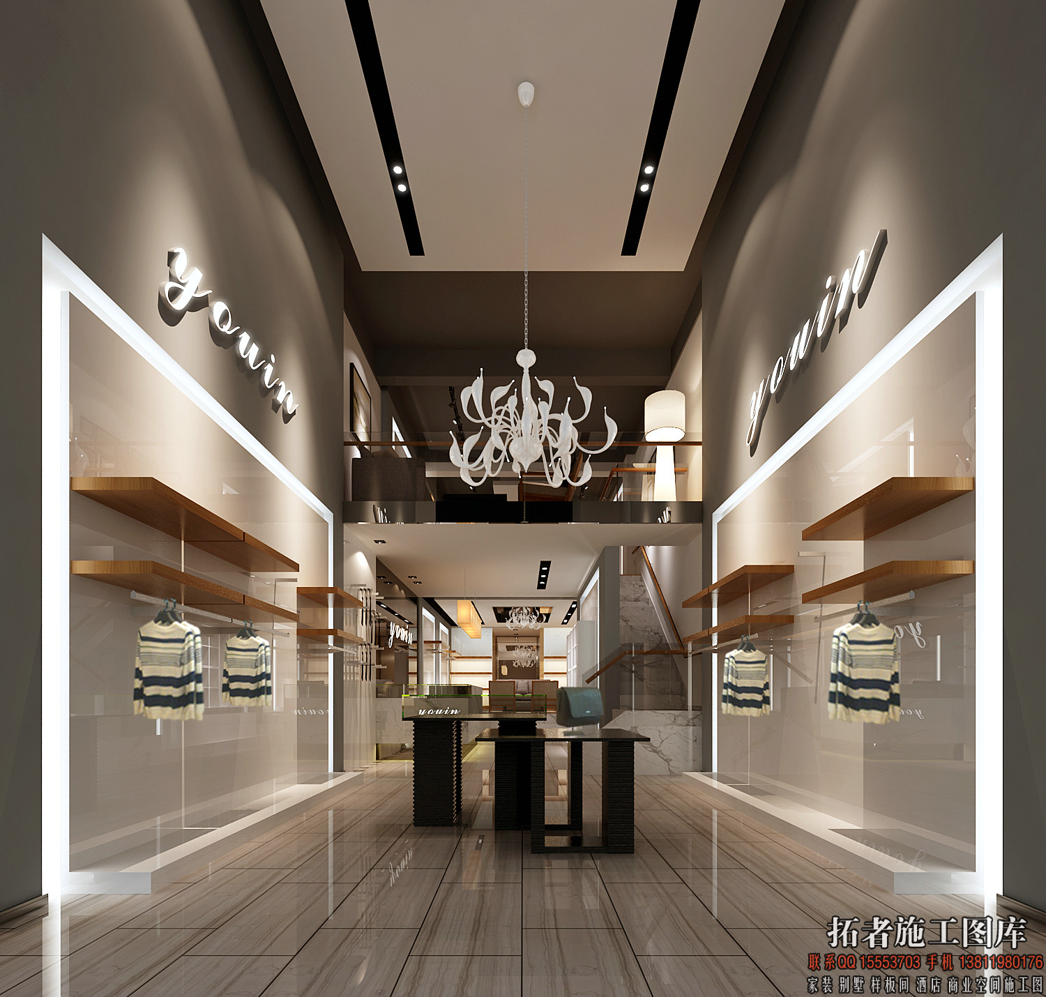 现代长乐服装店CAD施工图,服装店CAD图纸下载内容简介:图纸包含平面布置图、立面图、节点大样图、效果图等,作图规范,内容详实,作图规范。