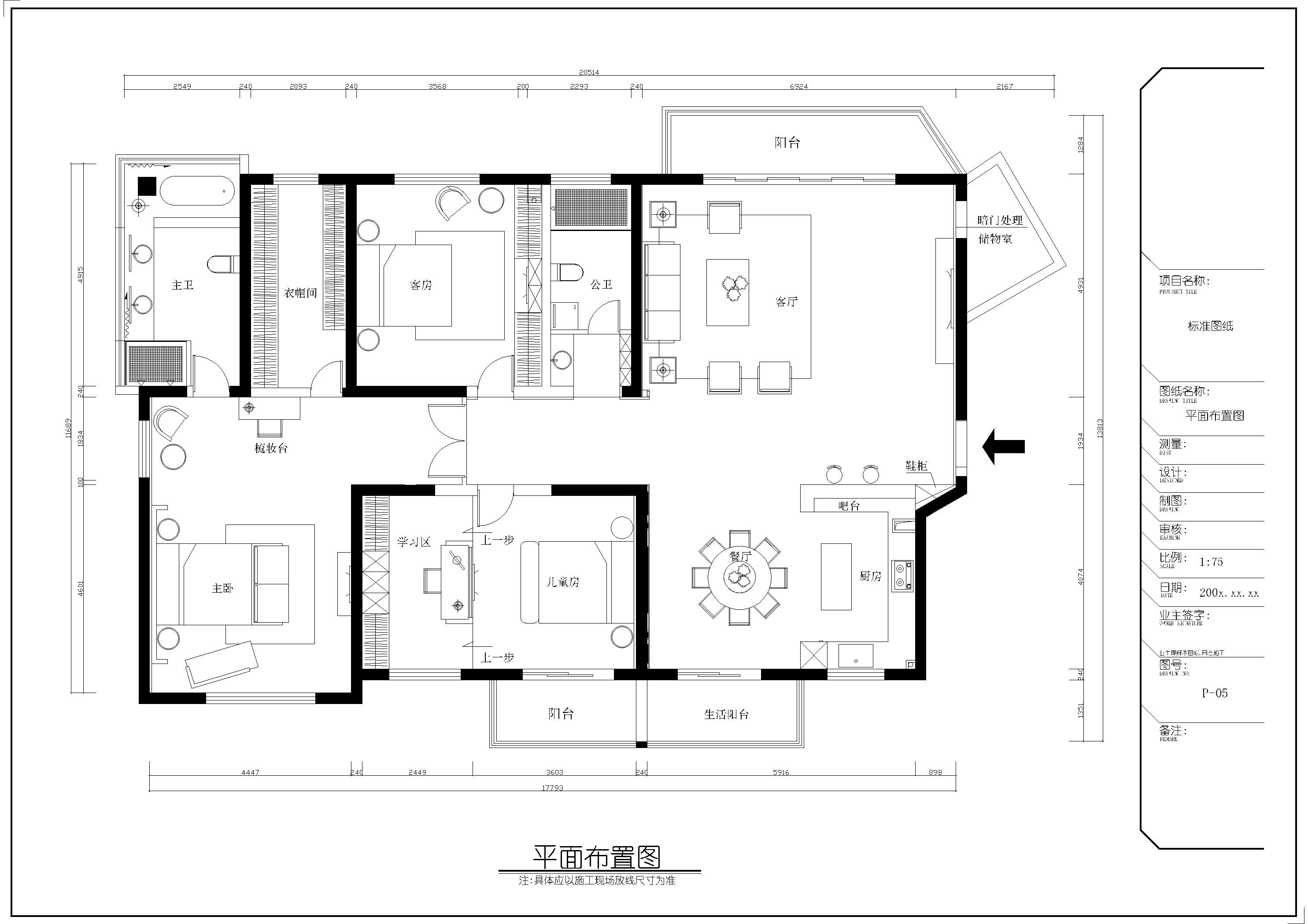 祥细家装衣帽间,客厅卧室户型图三居CAD,免费下载