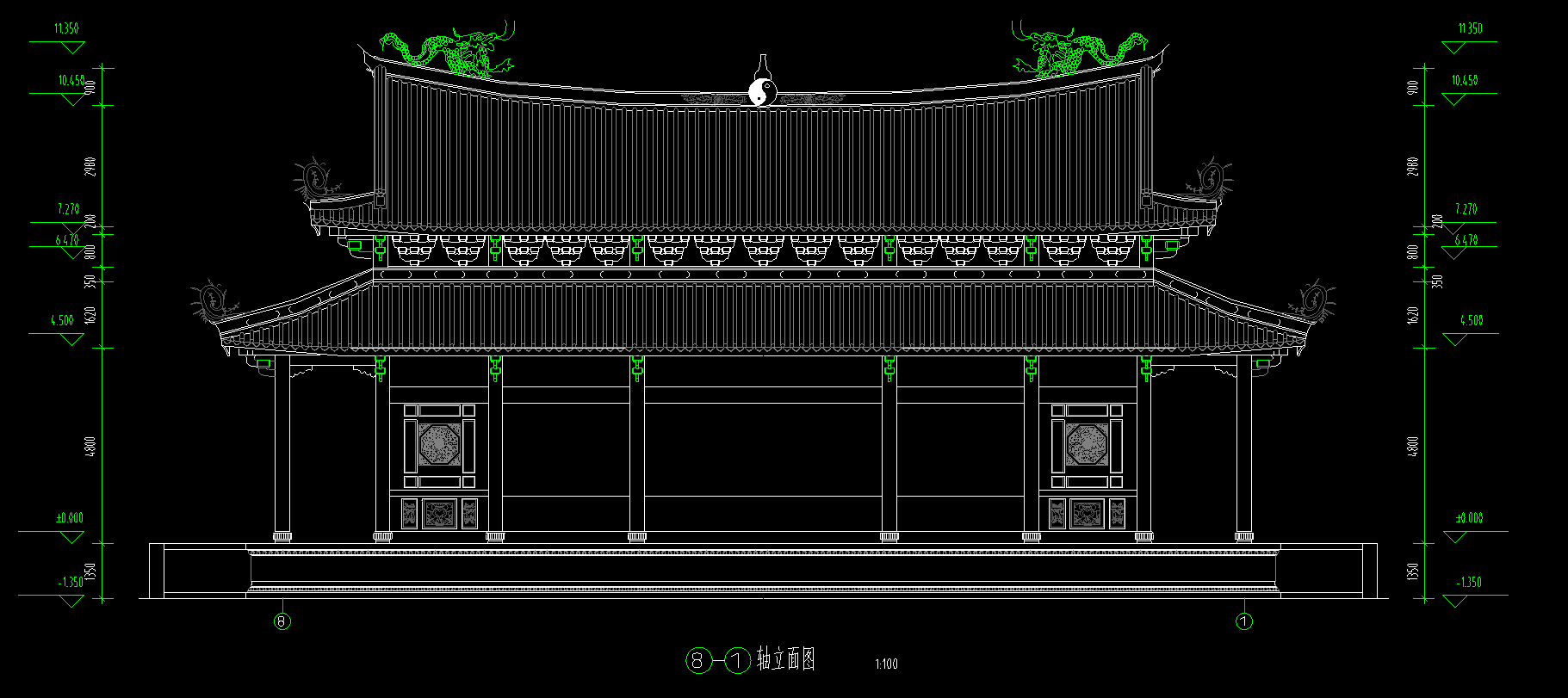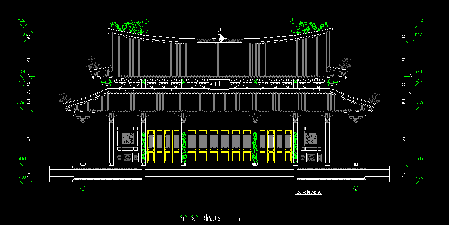 道家仿古建筑大殿建施图,大殿CAD建筑图纸下载
