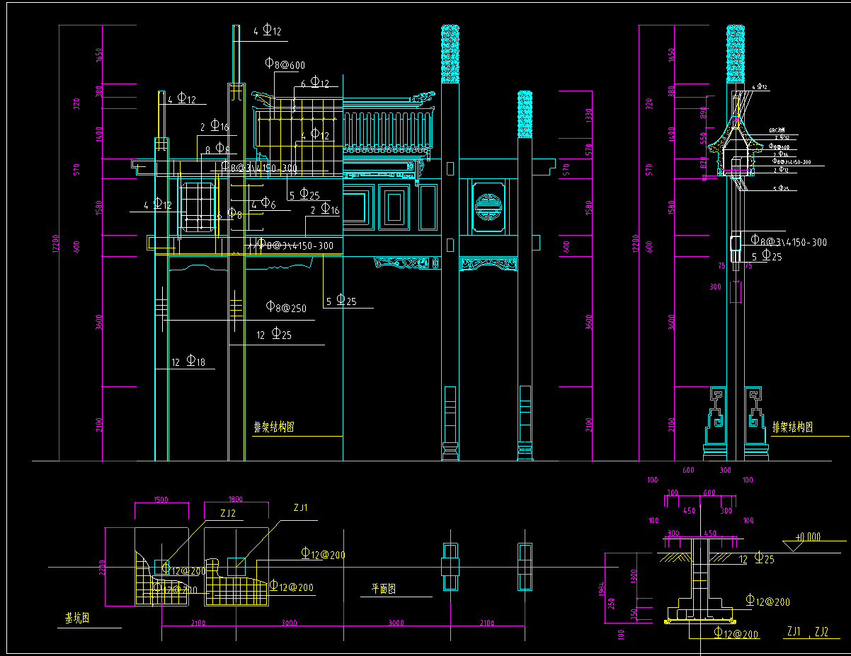 牌坊平立面施工图,牌坊CAD建筑图纸下载内容简介:图纸包含节点大样图、立面图、剖面图、平面图等,作图规范,内容详实,可供参考。