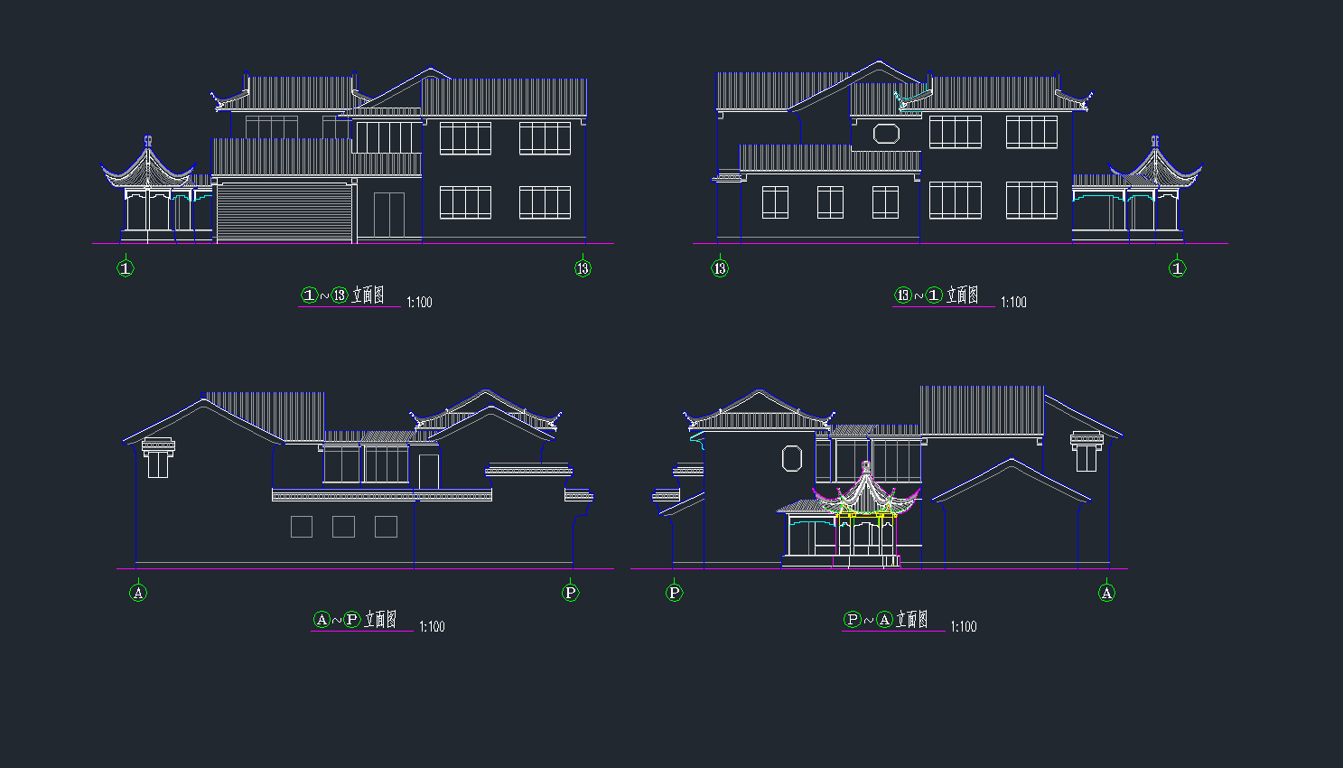 三套古建别墅建筑图,古建筑CAD建筑图纸下载内容简介:图纸含有古建筑平面布置图、立面图、节点大样图等,作图规范,内容详实,具有较高的参考价值。