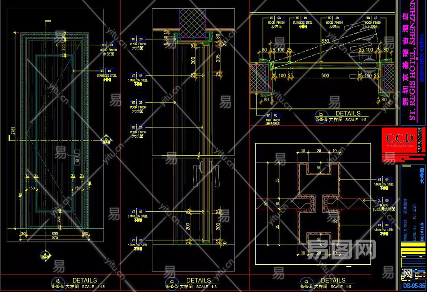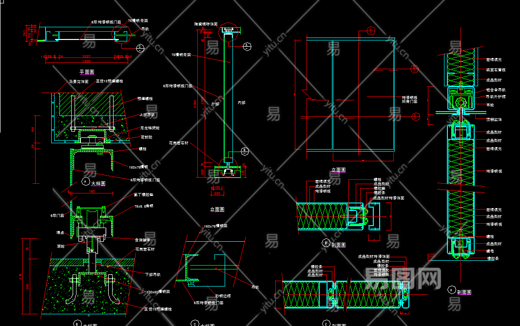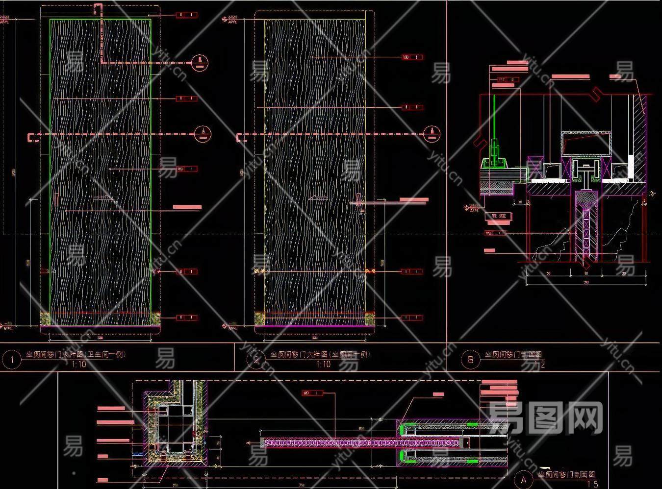 当前的位置:首页 > 室内CAD图纸 > cad > 节点详图 > 节点大样 > 【CAD图纸】隐形门 推拉门 旋转门CAD节点大样