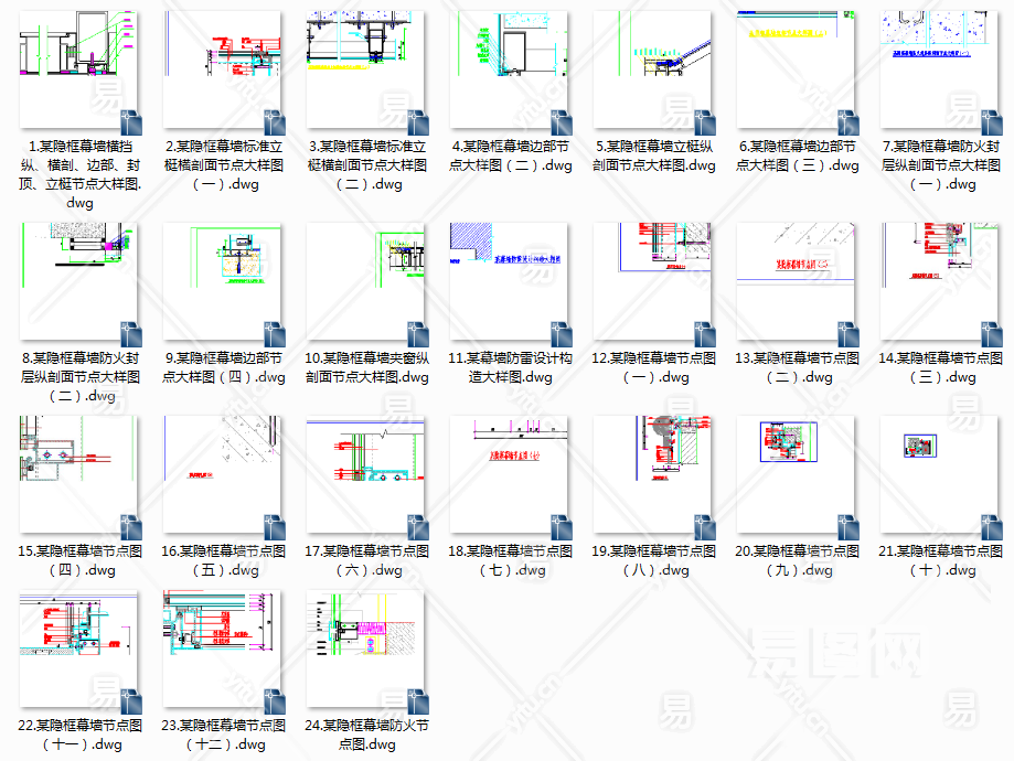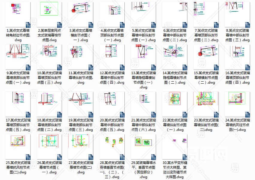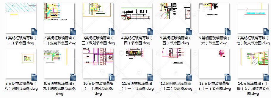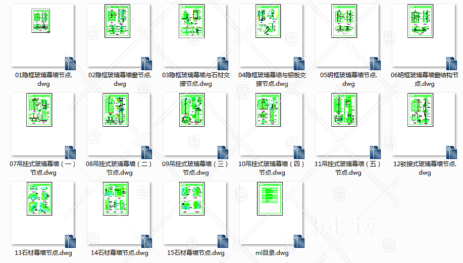 【CAD图纸】玻璃幕墙 钢结构 收口节点大样CAD图集