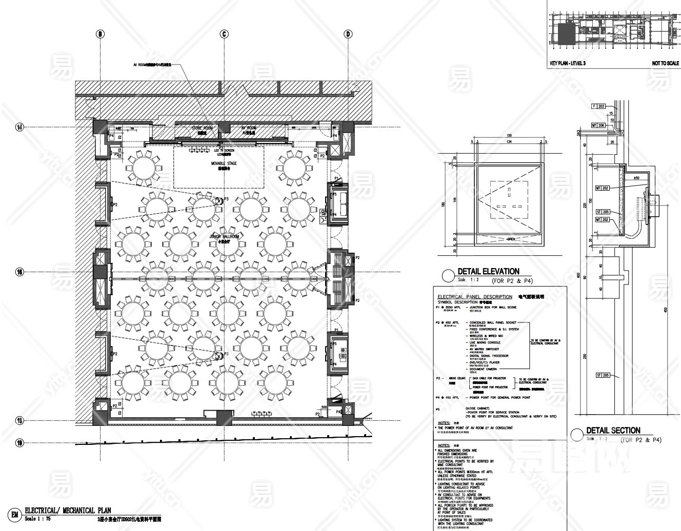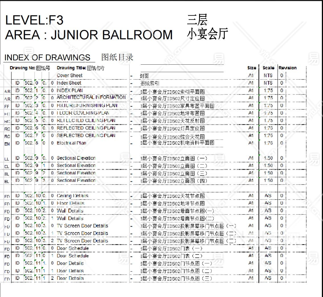 当前的位置:首页 > 室内CAD图纸 > cad > 工装图纸 > 酒店宾馆 > 【CAD图纸】太原万豪酒店宴会厅CAD施工图