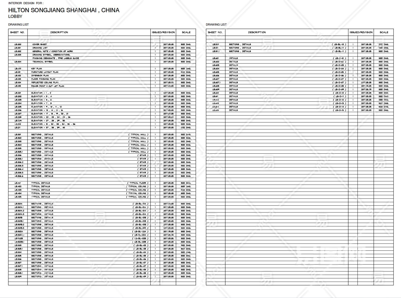 当前的位置:首页 > 室内CAD图纸 > cad > 工装图纸 > 酒店宾馆 > 【CAD图纸】上海松江希尔顿酒店大堂 CAD施工图+物料