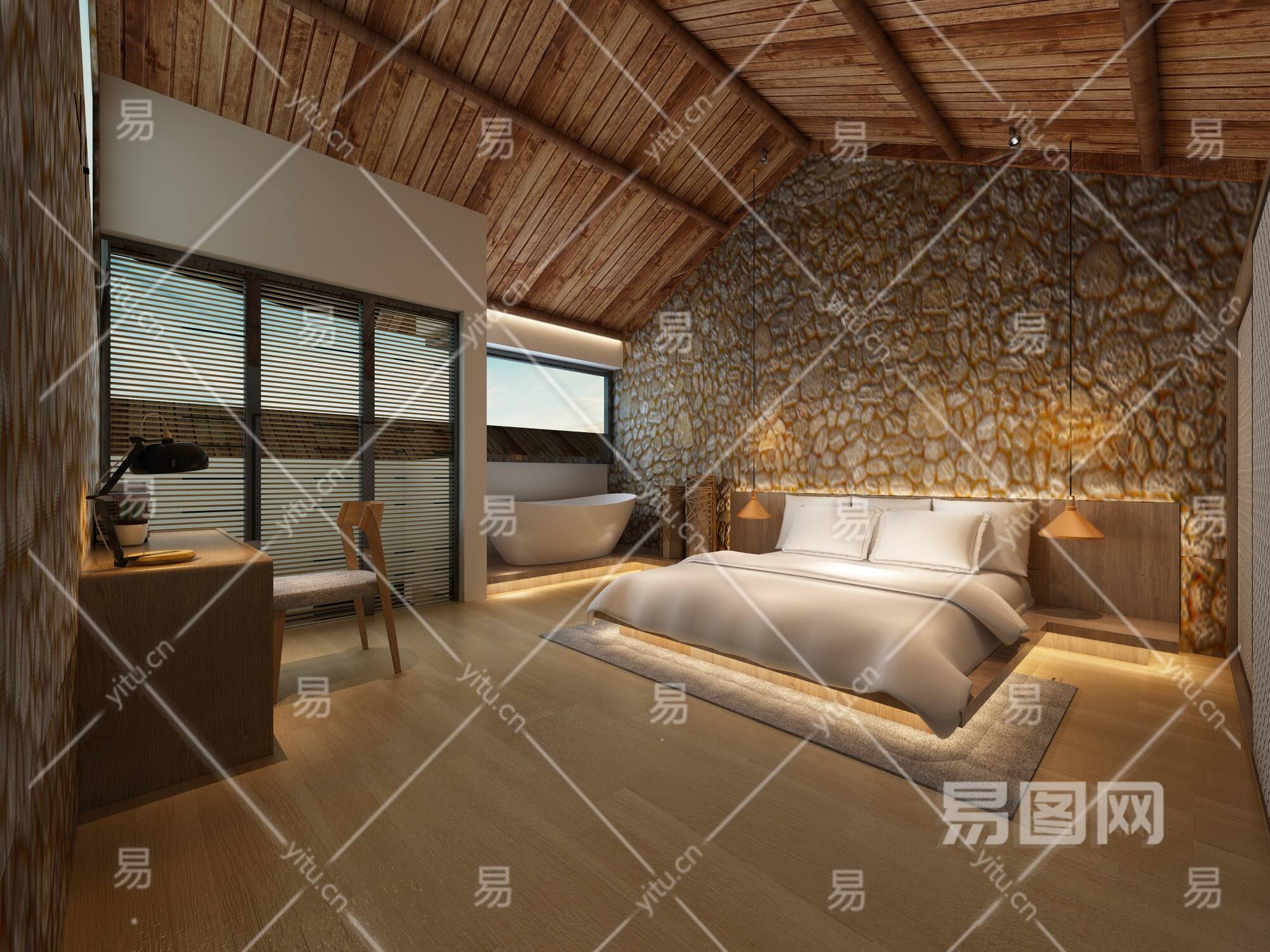 当前的位置:首页 > 室内CAD图纸 > cad > 工装图纸 > 酒店宾馆 > 【CAD图纸】民宿酒店客房 效果图+施工图CAD