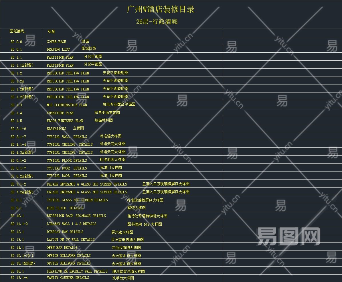 当前的位置:首页 > 室内CAD图纸 > cad > 工装图纸 > 酒店宾馆 > 【CAD图纸】广州W酒店 效果图+CAD施工图+物料表
