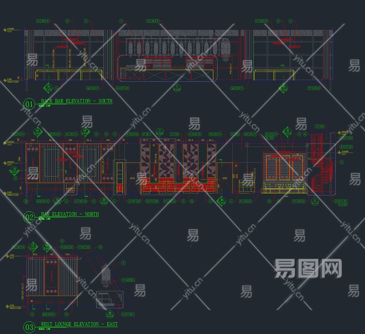 当前的位置:首页 > 室内CAD图纸 > cad > 工装图纸 > 酒店宾馆 > 【CAD图纸】镇江苏宁凯悦酒店酒吧 CAD施工图+效果图+实景图