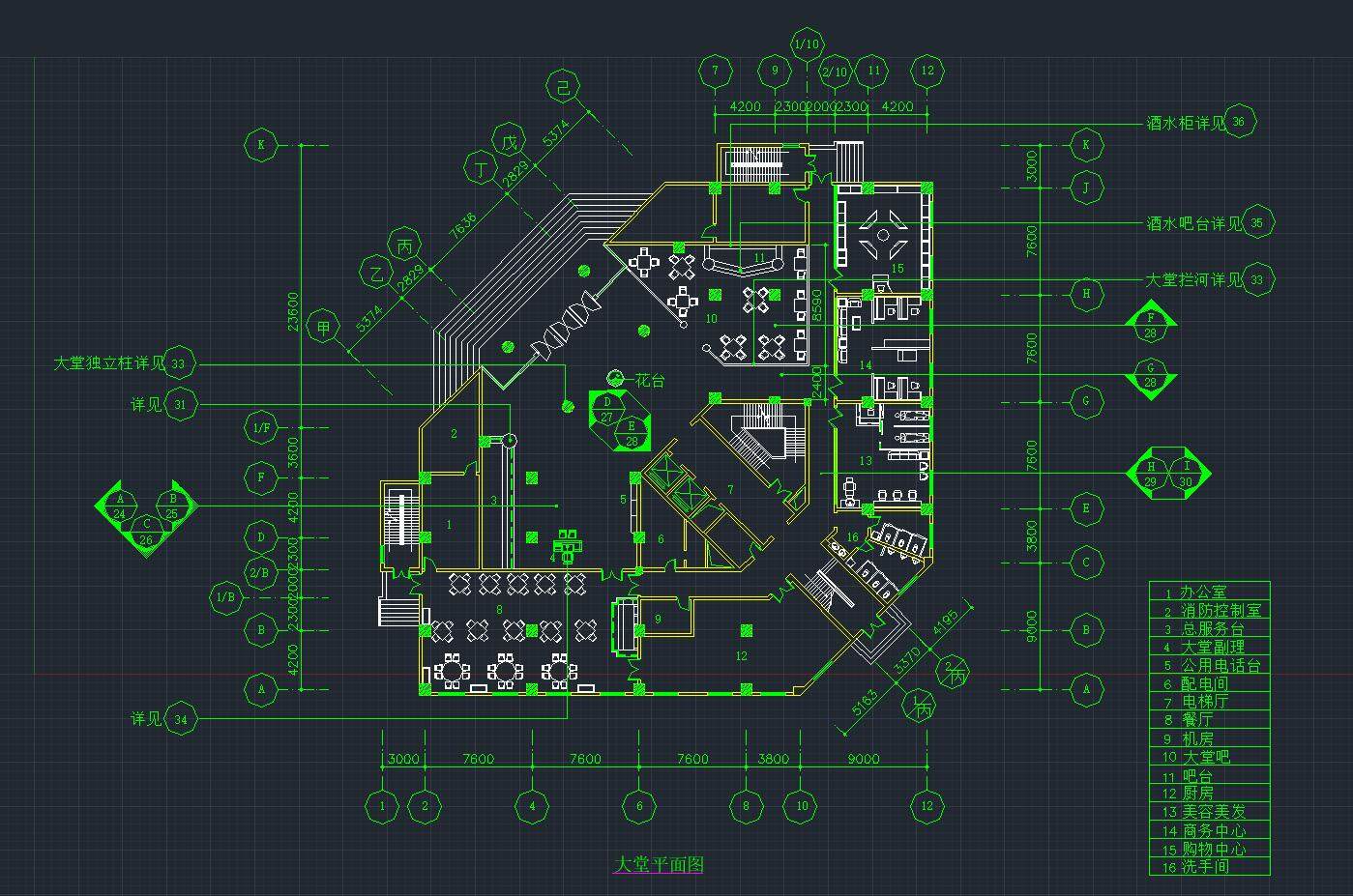 本资料为:现代宾馆大堂CAD施工图,内附详细施工图。