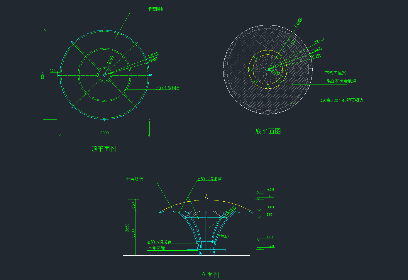 六角子园林 CAD施工图,六角CAD施工图纸下载内容简介:图纸含有子立面图、面图、子剖面图等,内容详实,具有比较高的参考价值。