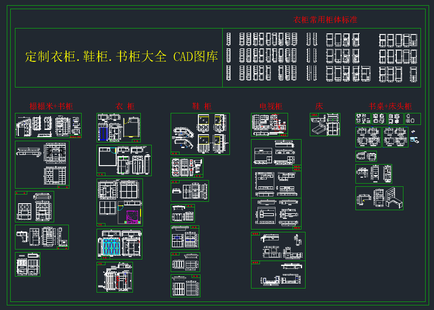 定制衣柜鞋柜书柜大全CAD图库,衣柜鞋柜书柜CAD施工图纸下载