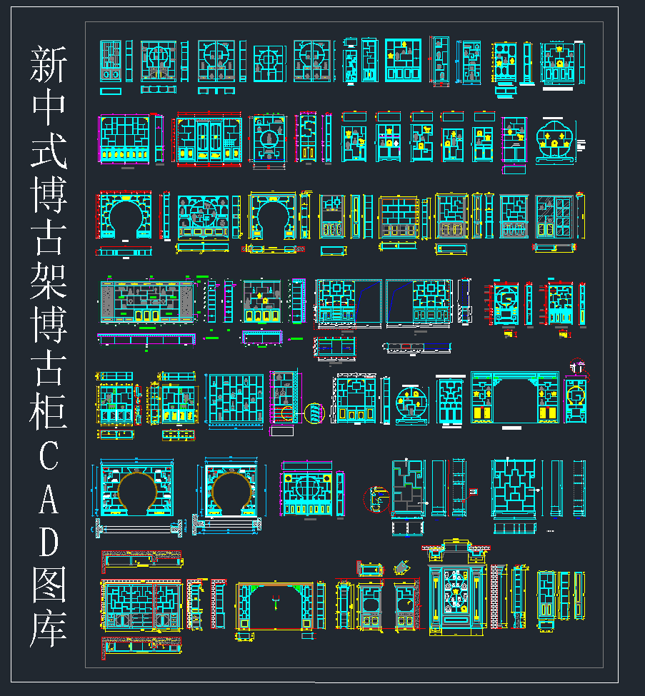 新中式博古架博古柜CAD图库,博古架博古柜CAD施工图纸下载