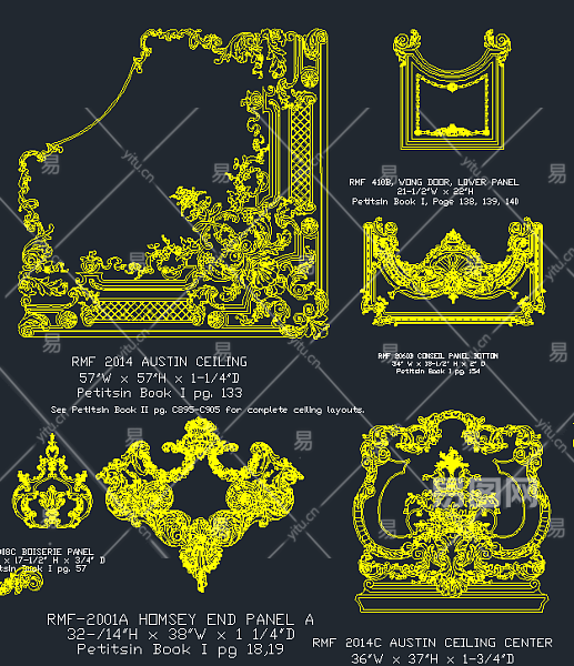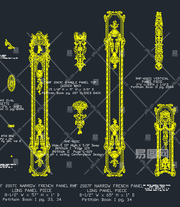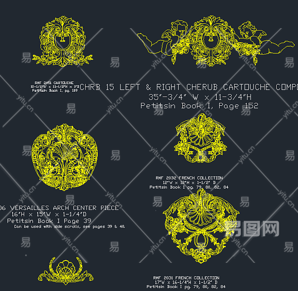 当前的位置:首页 > 室内CAD图纸 > cad > CAD图库 > 图案雕花 > 【CAD图纸】法式雕花CAD图库