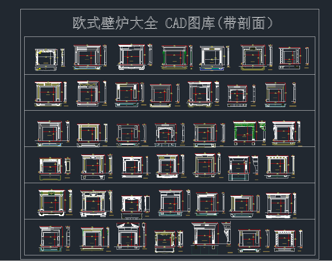 欧式壁炉大全CAD图库带剖面,壁炉CAD图纸下载内容简介:内容包含欧式壁炉大全CAD图,细节详尽丰富,具有较的参考价值与学习价值,方便学习参考