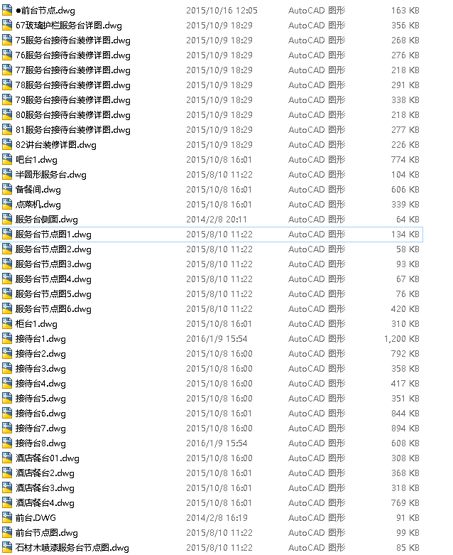 当前的位置:首页 > 室内CAD图纸 > cad > CAD图库 > 图库集 > 原创服务台吧台全套详细的CAD图库,服务台吧台CAD施工图纸下载