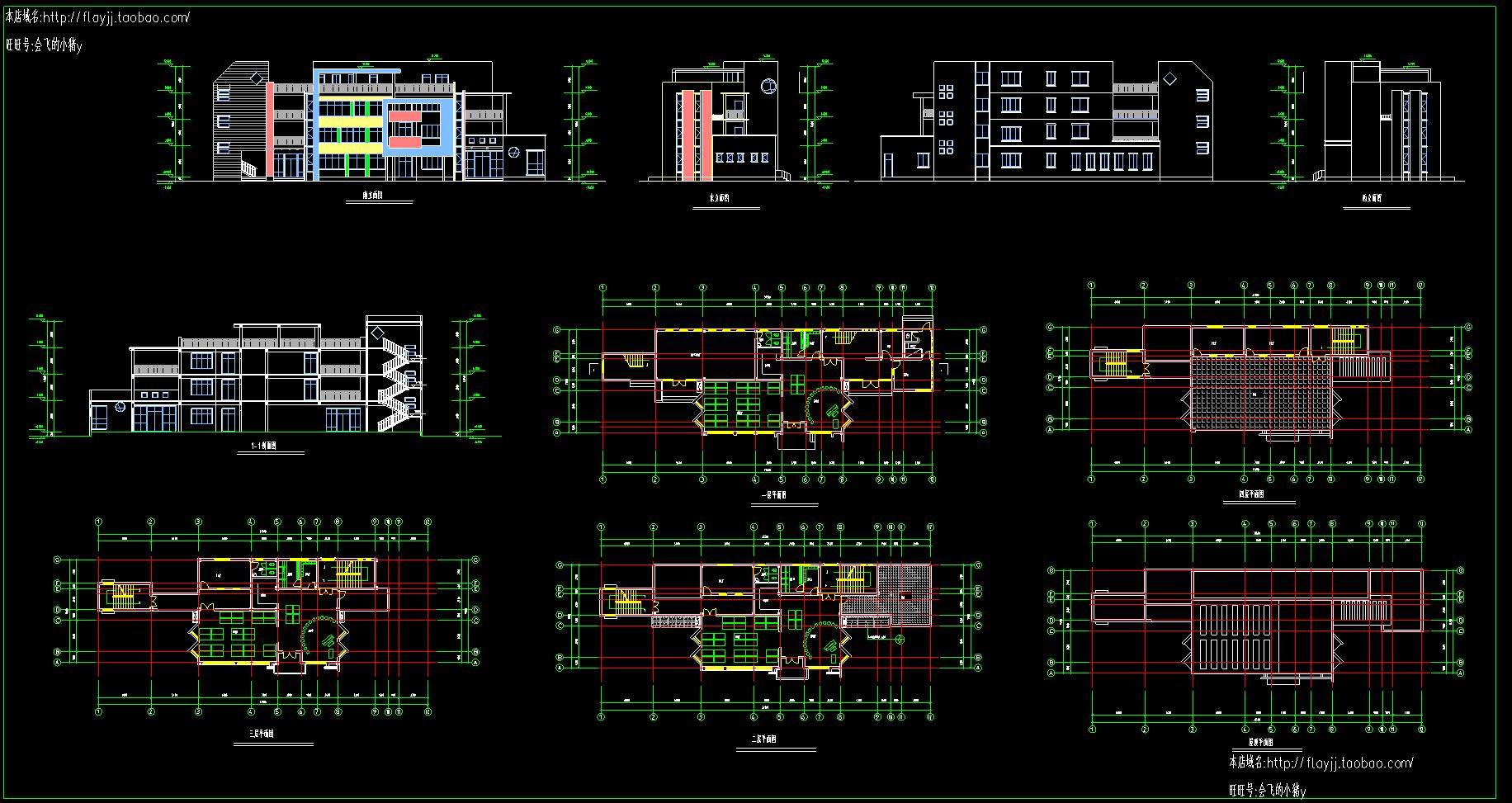 幼儿园cad建筑图纸,幼儿园平面立面图下载