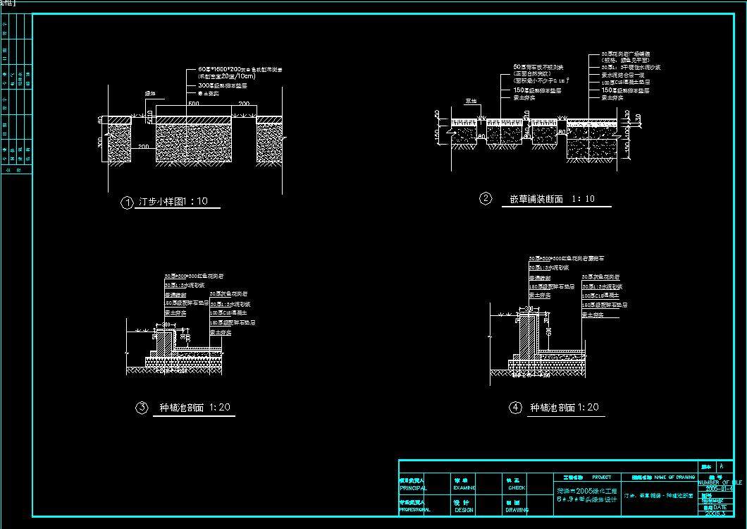 绿施工设计,街绿景观CAD规划图内容简介:平面图、设计图、设计详图、立面图、绿化、定位、剖面图,尺寸大小合理、文字统一、定位合理、具有参考价值。