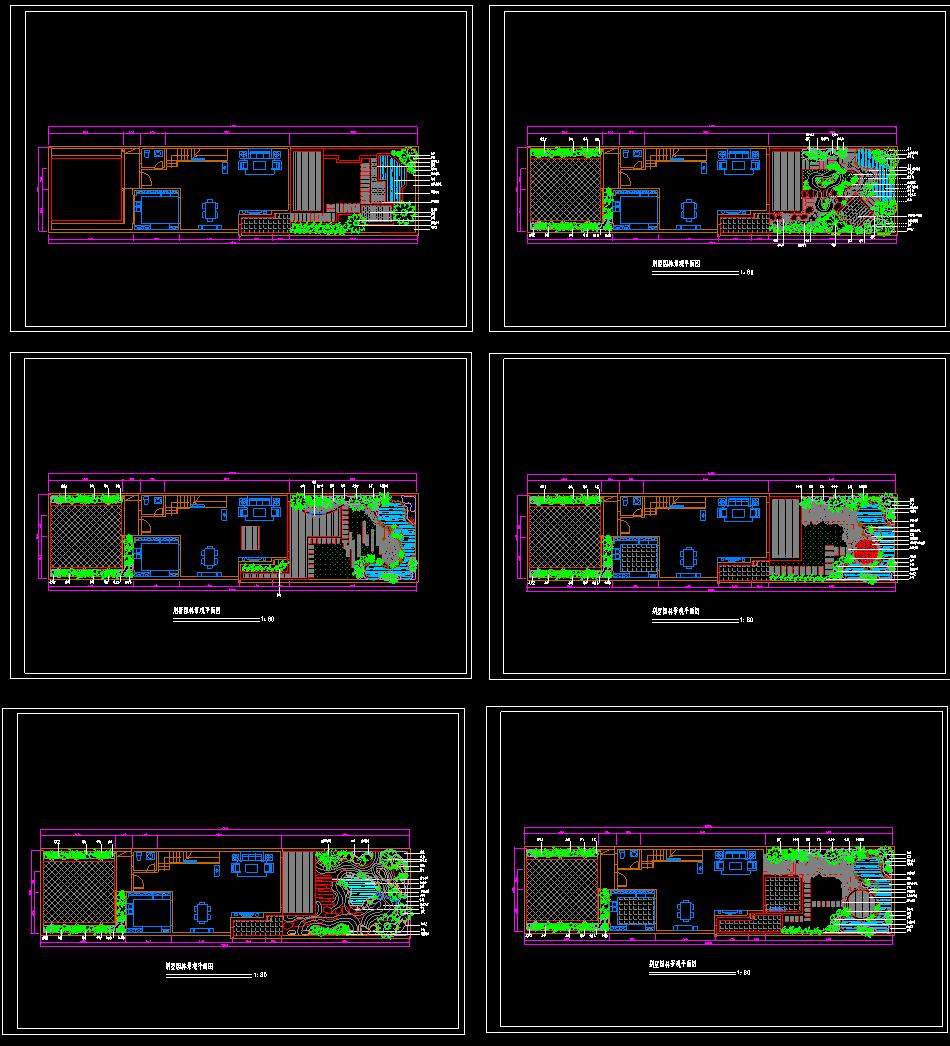 资料内容包括:全套别墅园林景观平面图,内含别墅园林景观平面图,共有6种设计方案。该图纸制作详细规范,文字标注统一,细节详尽丰富,内容详实,尺寸大小合理,具有很高的参考价值,可以作为参考学习的模板,供设计师、建筑师下载参考。