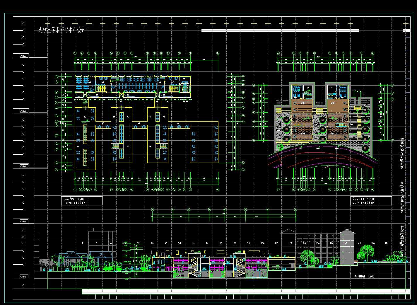 大学生学术研习中心设计图,大学cad设计图纸下载