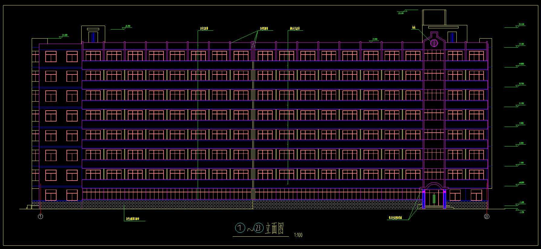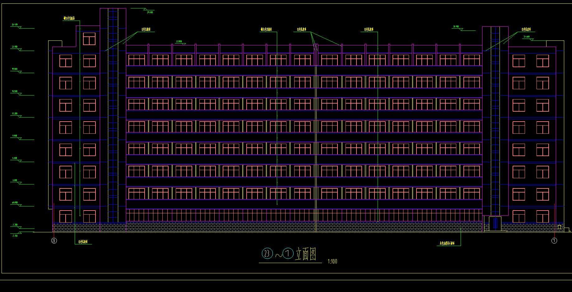 资料内容包括:全套甘肃农业大学11号学生公寓施工图,里面包含立面图,剖面图,箱间、屋顶平面图,一~七层平面图等。该图纸制作详细规范,文字标注统一,细节详尽丰富,内容详实,尺寸大小合理,具有很高的参考价值,可以作为参考学习的模板,供设计师、建筑师下载参考。