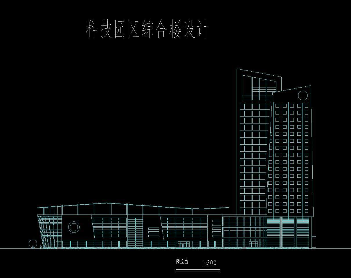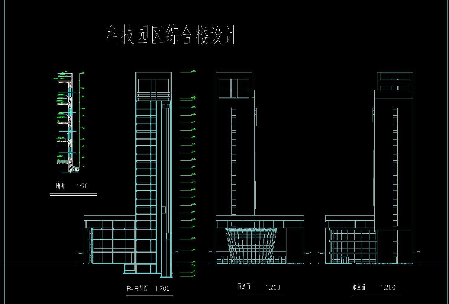 科技园综合楼设计立面图,综合楼cad建筑工程图纸下载
