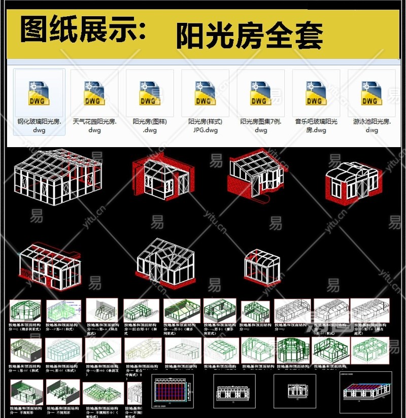 原创最新款阳光房设计CAD全套图集3D模型