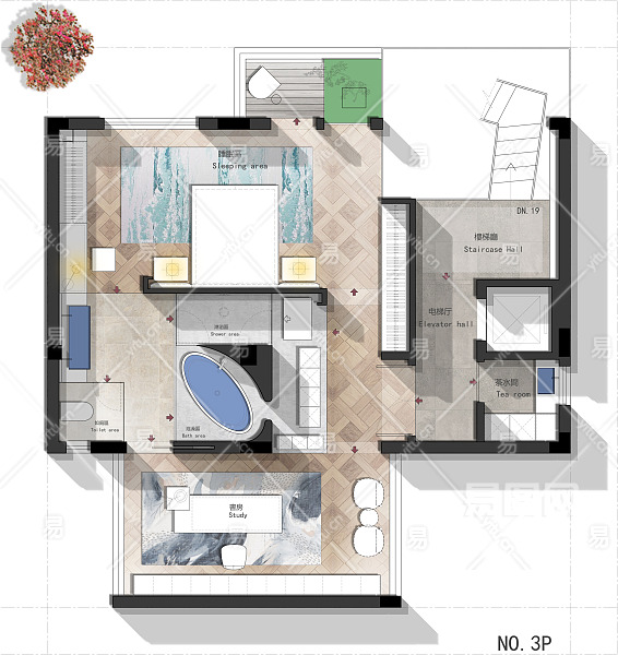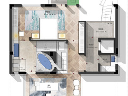 【CAD图纸】450㎡别墅四层CAD平面设计方案+PSD彩平