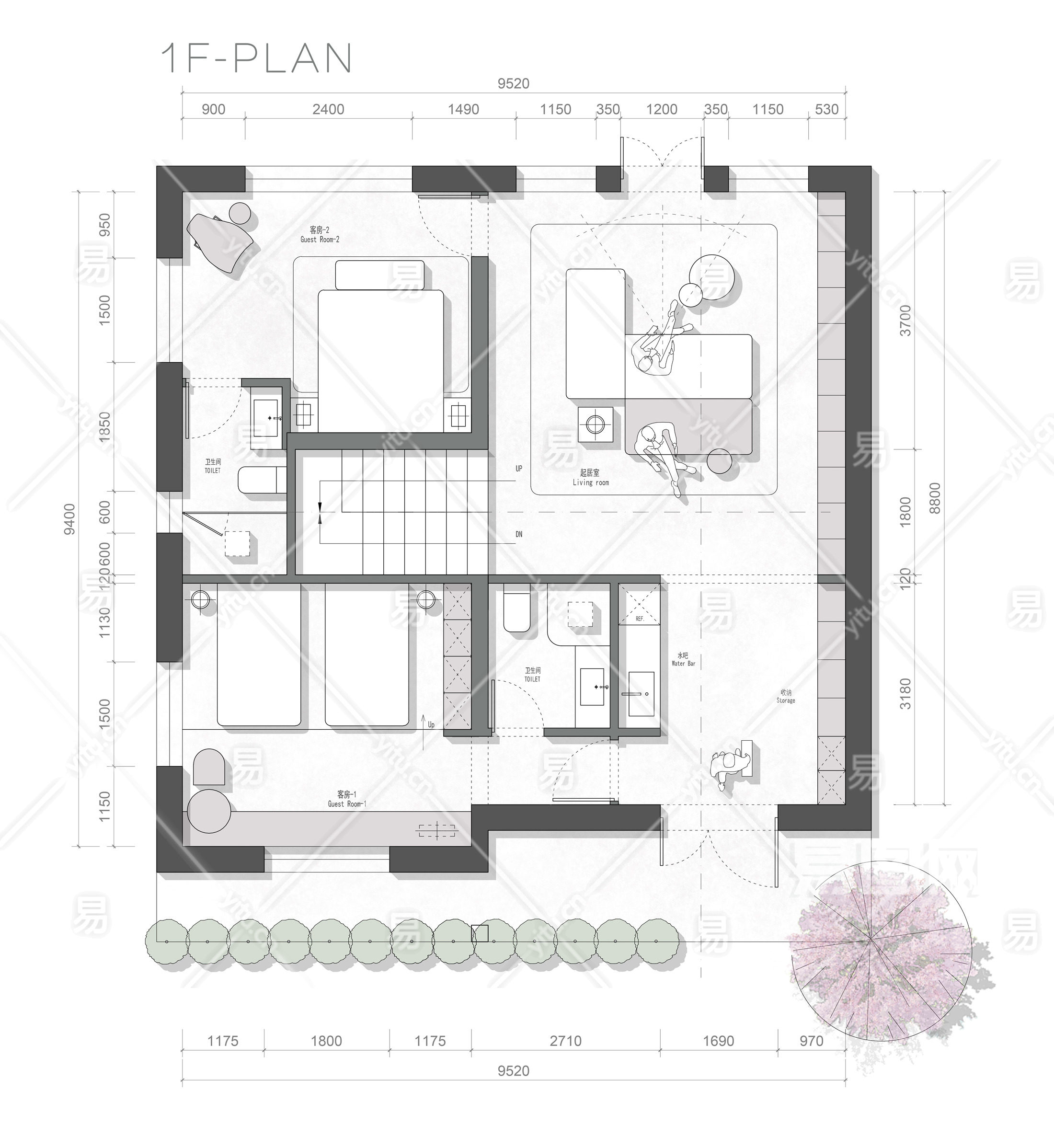 当前的位置:首页 > 室内CAD图纸 > cad > 建筑方案设计 > 别墅建筑图纸 > 【CAD图纸】345㎡民宿改造CAD平面方案+PSD彩平