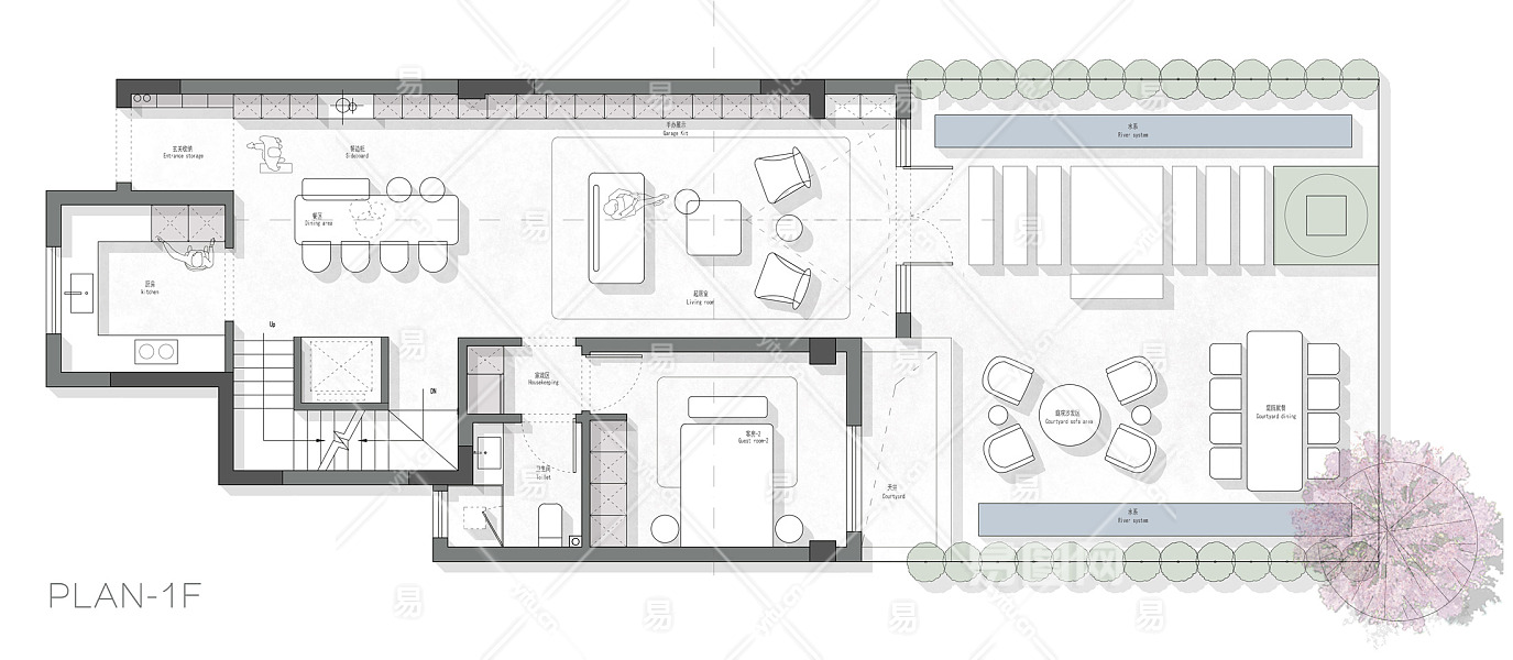 当前的位置:首页 > 室内CAD图纸 > cad > 建筑方案设计 > 别墅建筑图纸 > 【CAD图纸】416㎡联排别墅CAD平面方案+PSD彩平