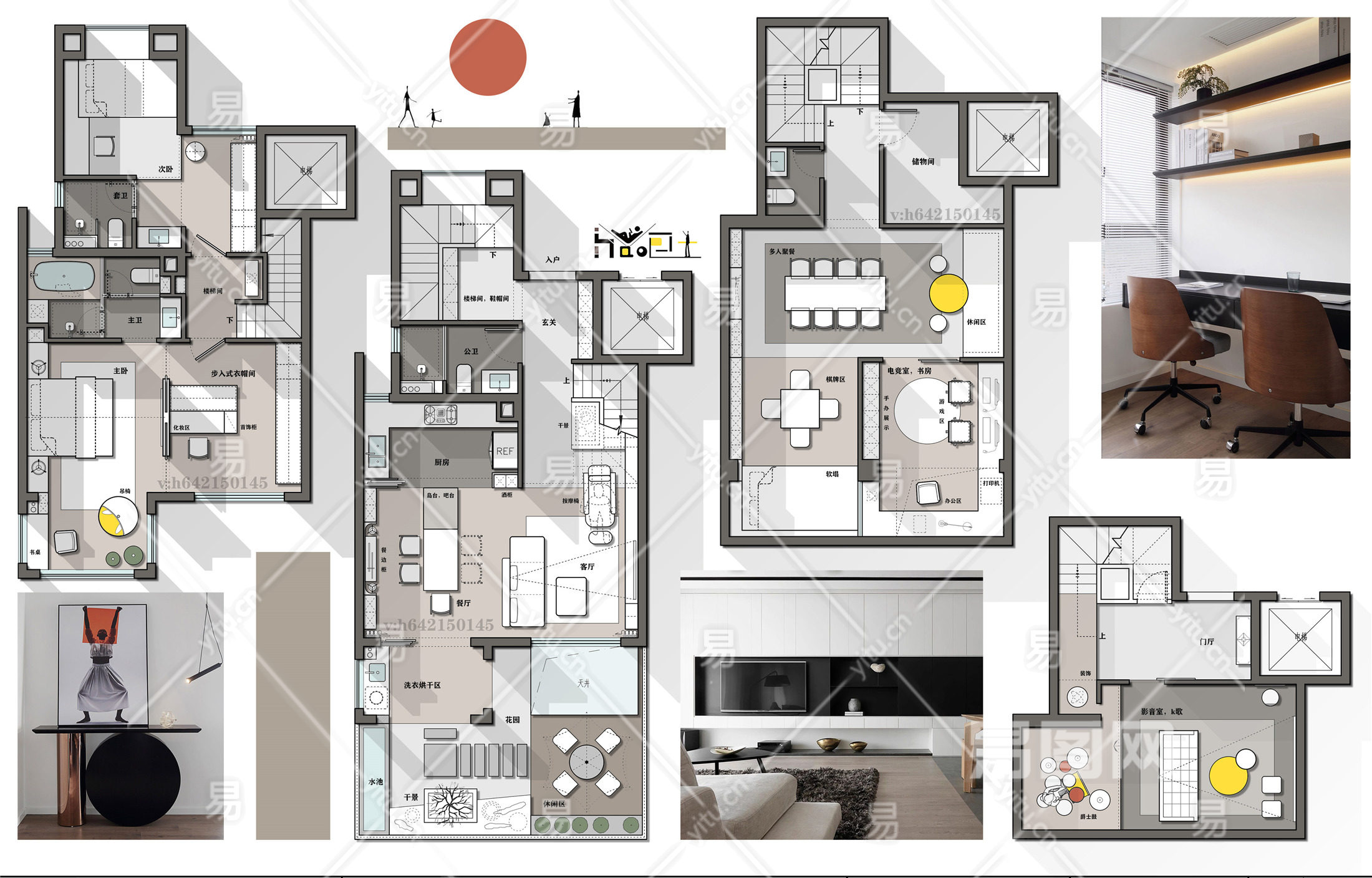 【CAD图纸】305㎡别墅CAD平面方案+PSD彩平