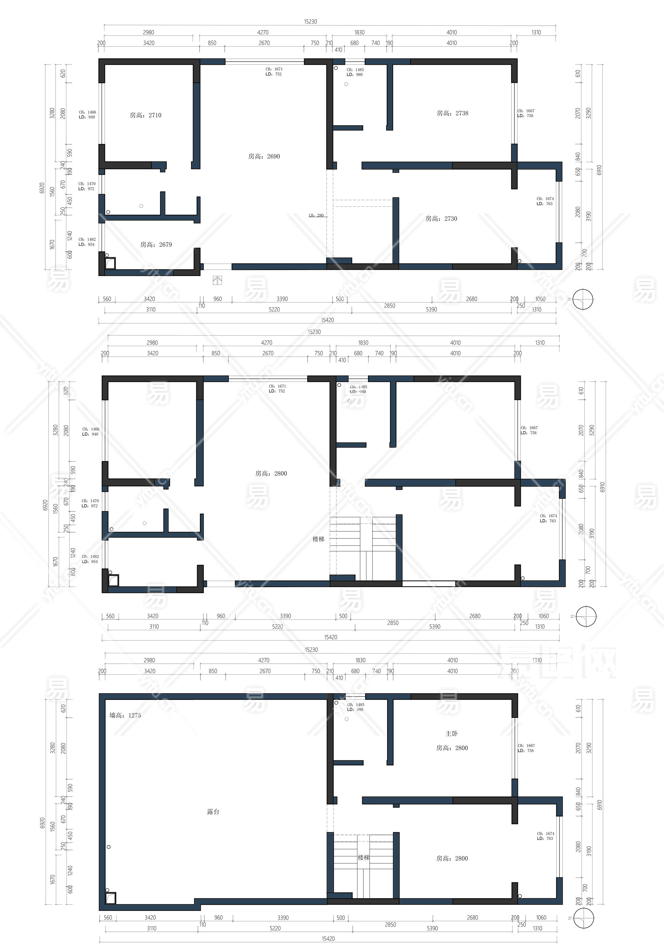 当前的位置:首页 > 室内CAD图纸 > cad > 建筑方案设计 > 别墅建筑图纸 > 【CAD图纸】三层复式CAD平面设计方案+PSD彩平