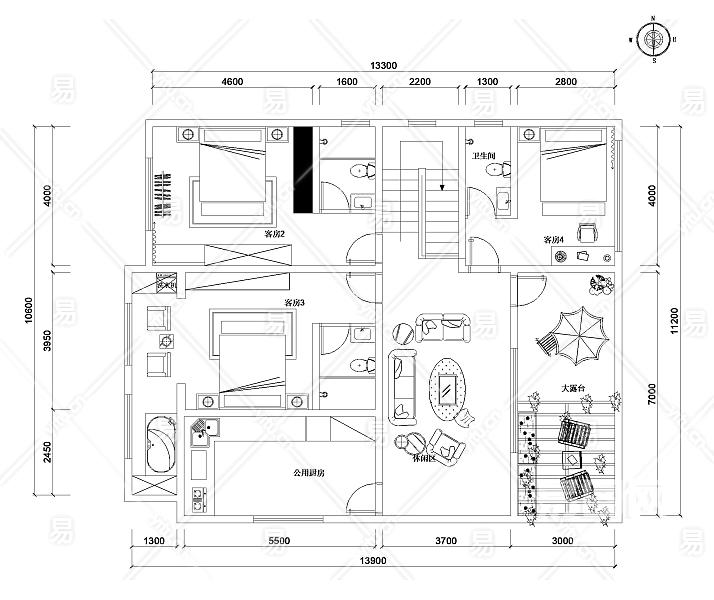 当前的位置:首页 > 室内CAD图纸 > cad > 建筑方案设计 > 宾馆酒店建筑 > 【CAD图纸】民宿CAD平面布置图方案