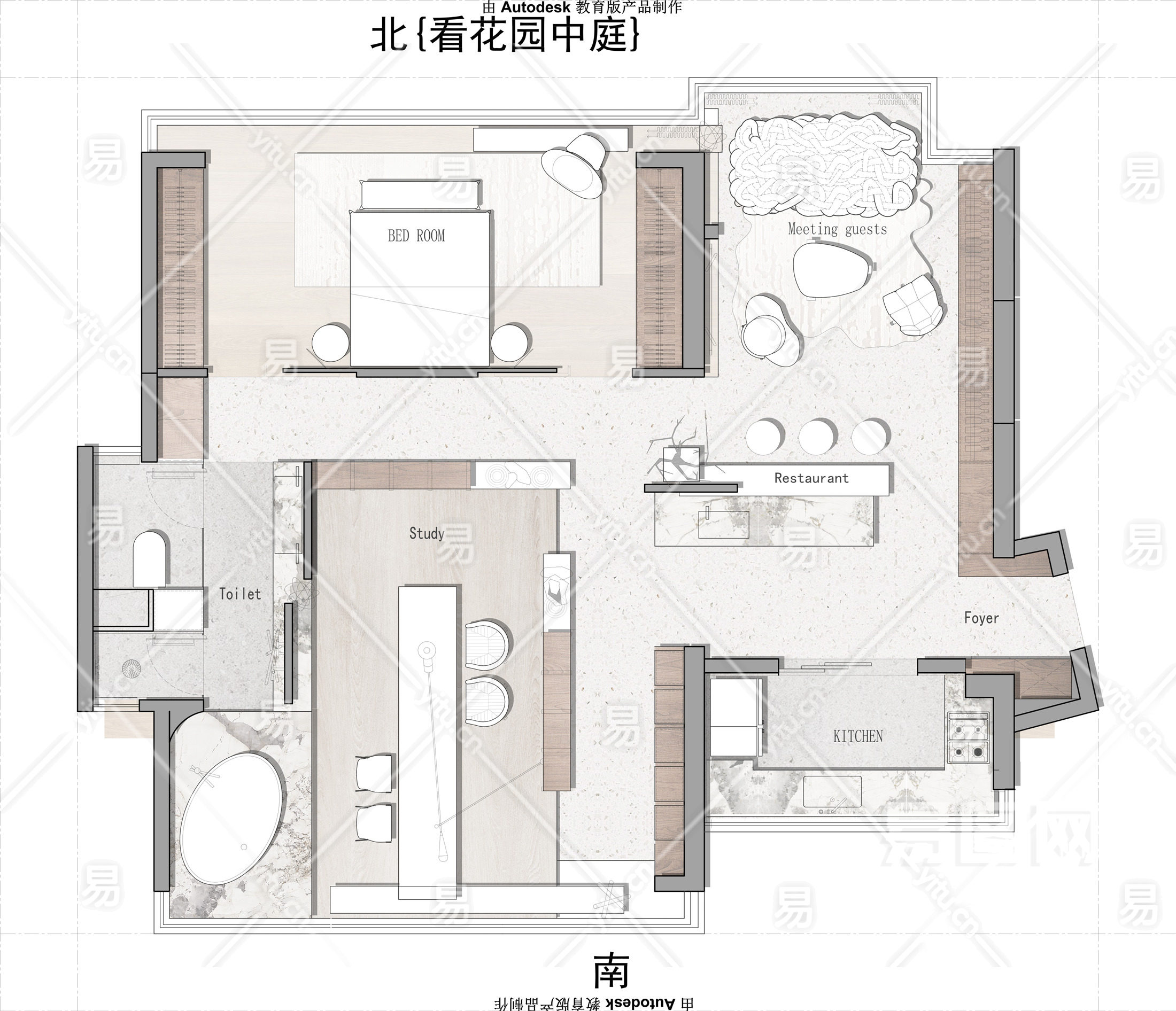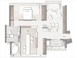 【CAD图纸】110㎡一居室平面方案