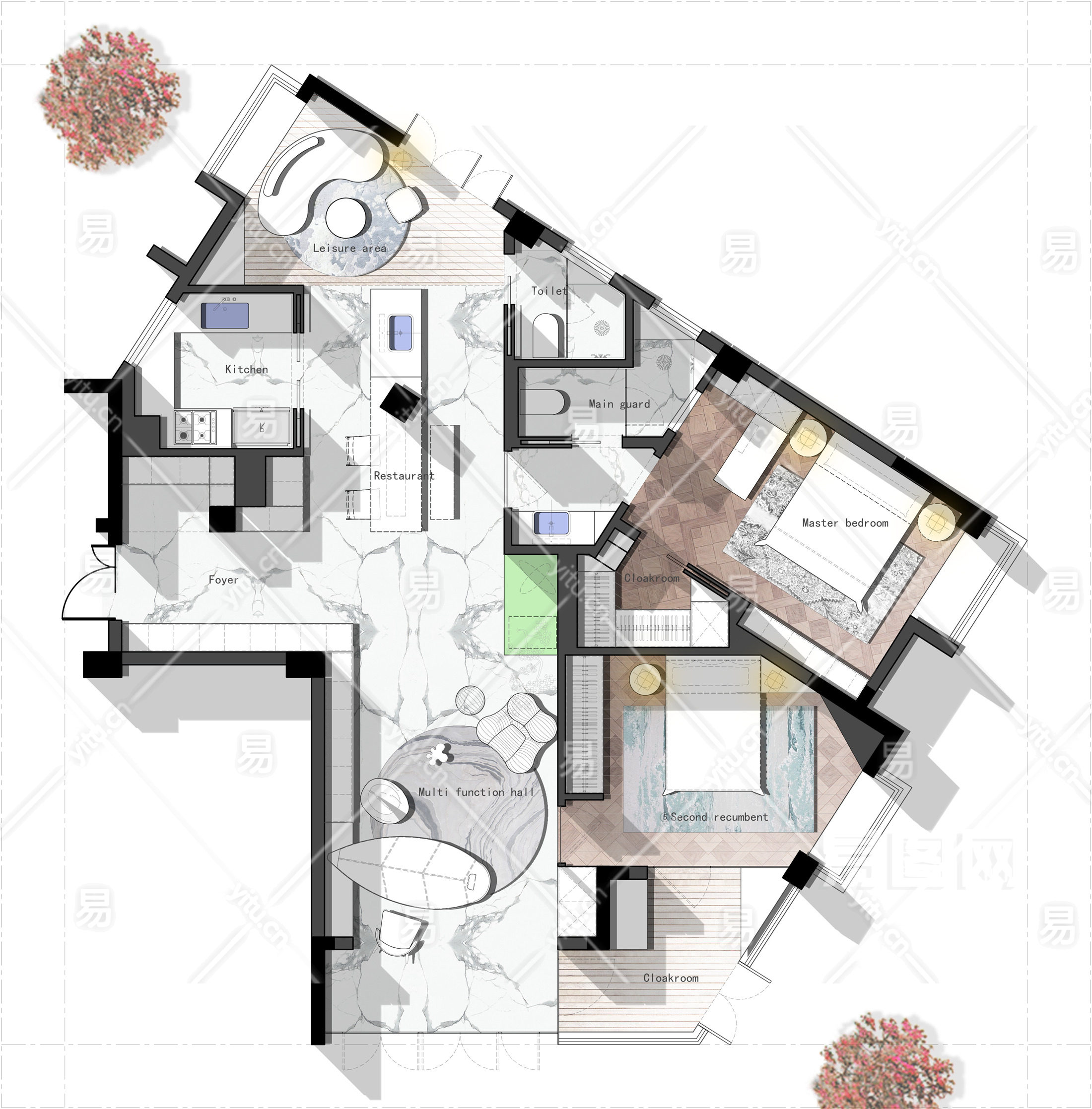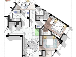 【CAD图纸】120㎡异型房平面设计方案