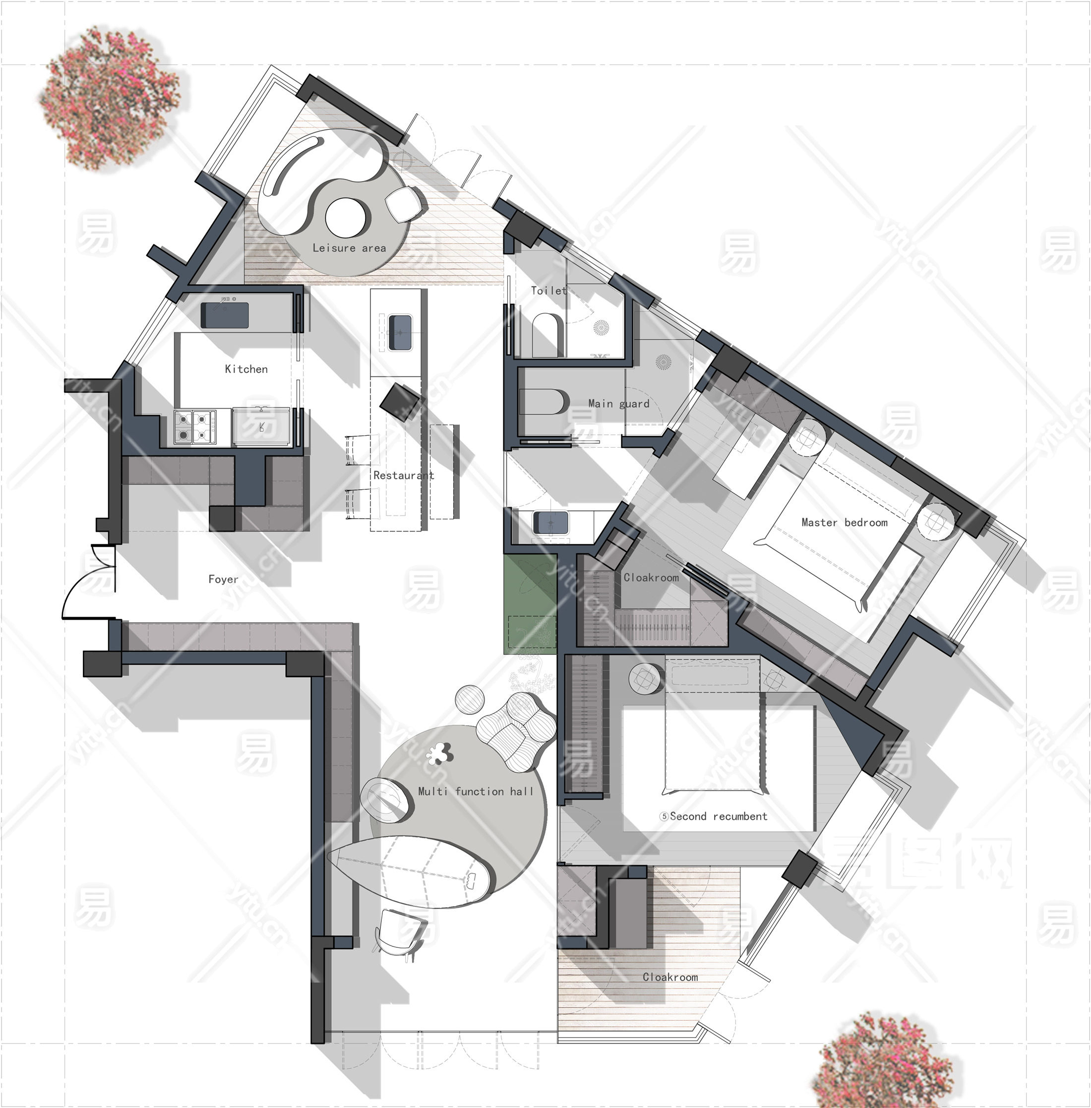 当前的位置:首页 > 室内CAD图纸 > cad > 建筑方案设计 > 居住建筑图纸 > 【CAD图纸】120㎡异型房平面设计方案