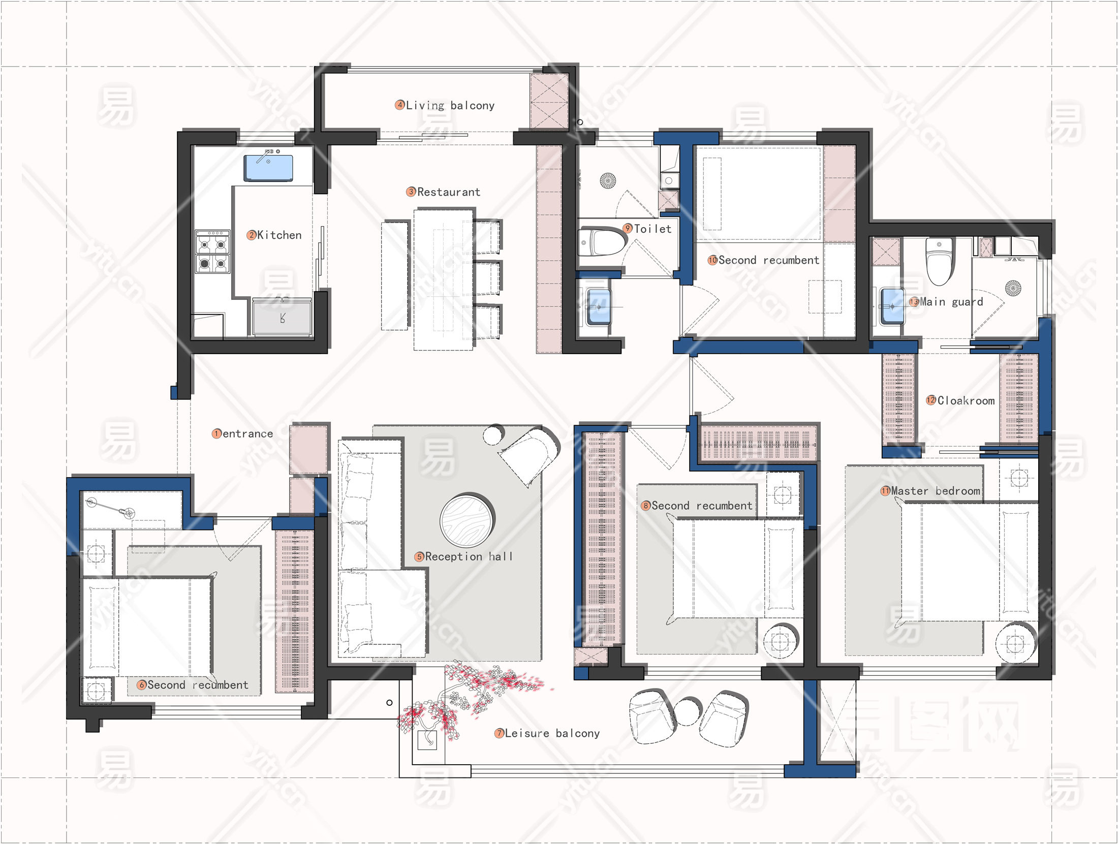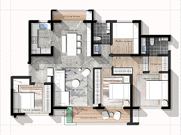 【CAD图纸】130㎡四居室室内平面方案